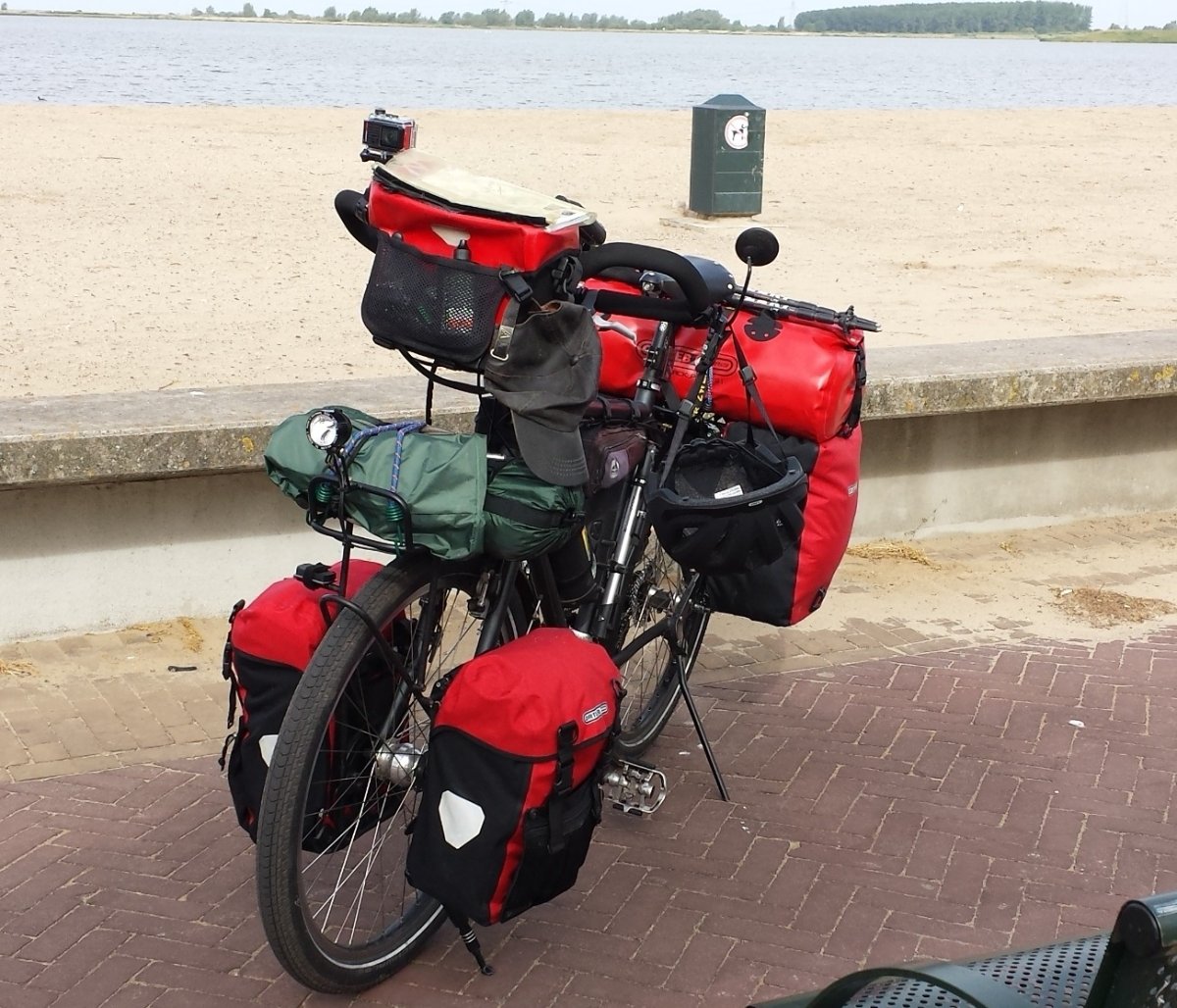 Ik heb mijn Akto in een DD Compression Sack verpakt en op de voordrager vastgebonden.