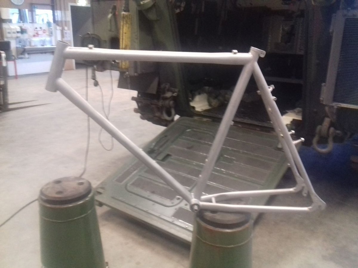 Wat was er mis met het frame dat het deze behandeling nodig had? Hopelijk past het balhoofdstel nog, is de bracket nog goed, de zadelklem bruikbaar en ik neem aan dat je alle draadgaten en de remnokken beschermd hebt?