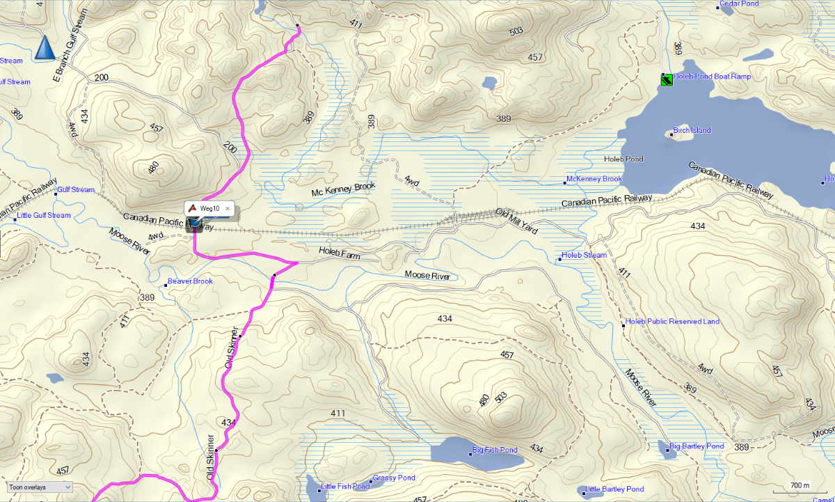 Tenslotte wat mij betreft de optische winnaar: de US_Northeast_OSM kaart door de Tovenaar hierboven aanbevolen. De contouren van de meertjes zijn minder schematisch dan op de vorige OSM kaarten. Als je details van de hoogtelijnen vergelijkt met die van de Garmin topo, denk ik dat Garmin veel nauwkeuriger is, maar ik ben niet van plan om bergwandelingen te gaan maken.
