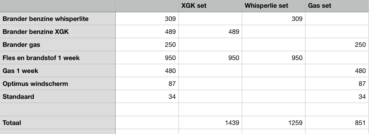 Bij een langere tocht willen we toch maar niet afhankelijk zijn van winkels die maar op bepaalde plekken zijn. Benzine is overal te krijgen. Toch wel jammer want het verschil in gewicht is er best wel. Schermafbeelding 2018-03-12 om 13.26.40.png