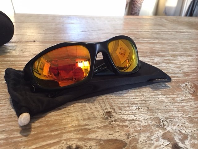 Het gaat om de volgende lenzen: fire iridium (voor zonnige dagen), black iridium (voor zonnige dagen) en lichtrode lenzen waar ik de naam niet meer van weet (voor bewolkte dagen).