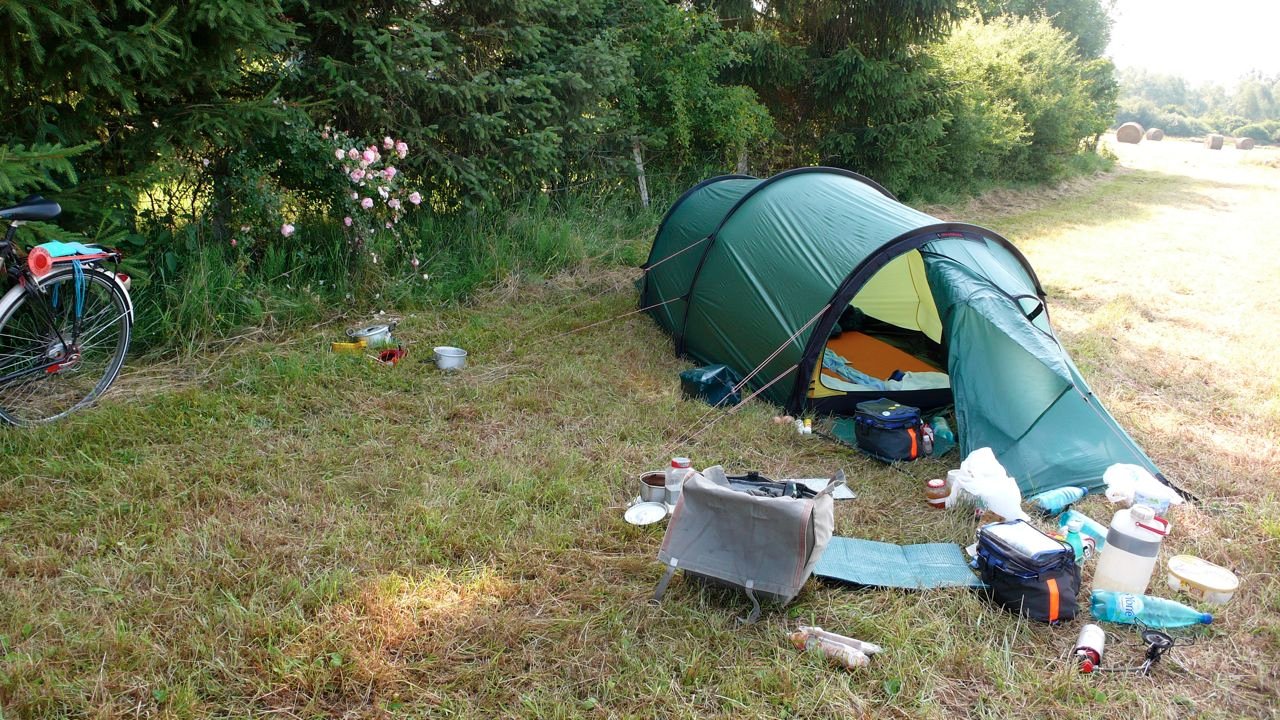 - stokken max. 45 cm, zodat de tent in de fietstas past