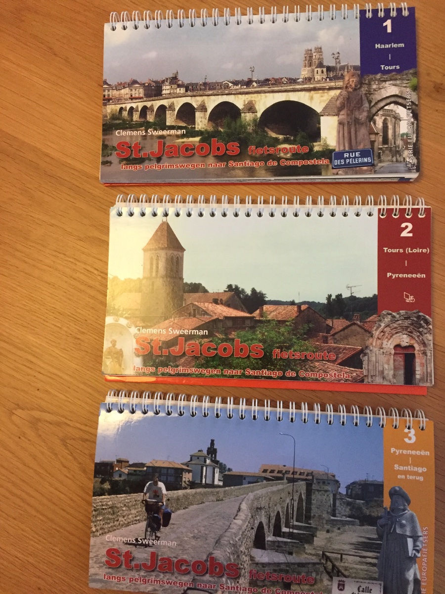 Te koop delen 1 t/m 3 (compleet dus) van de St Jacobs fietsroute (Haarlem - Santiago de Compostella) van Clemens Sweerman.