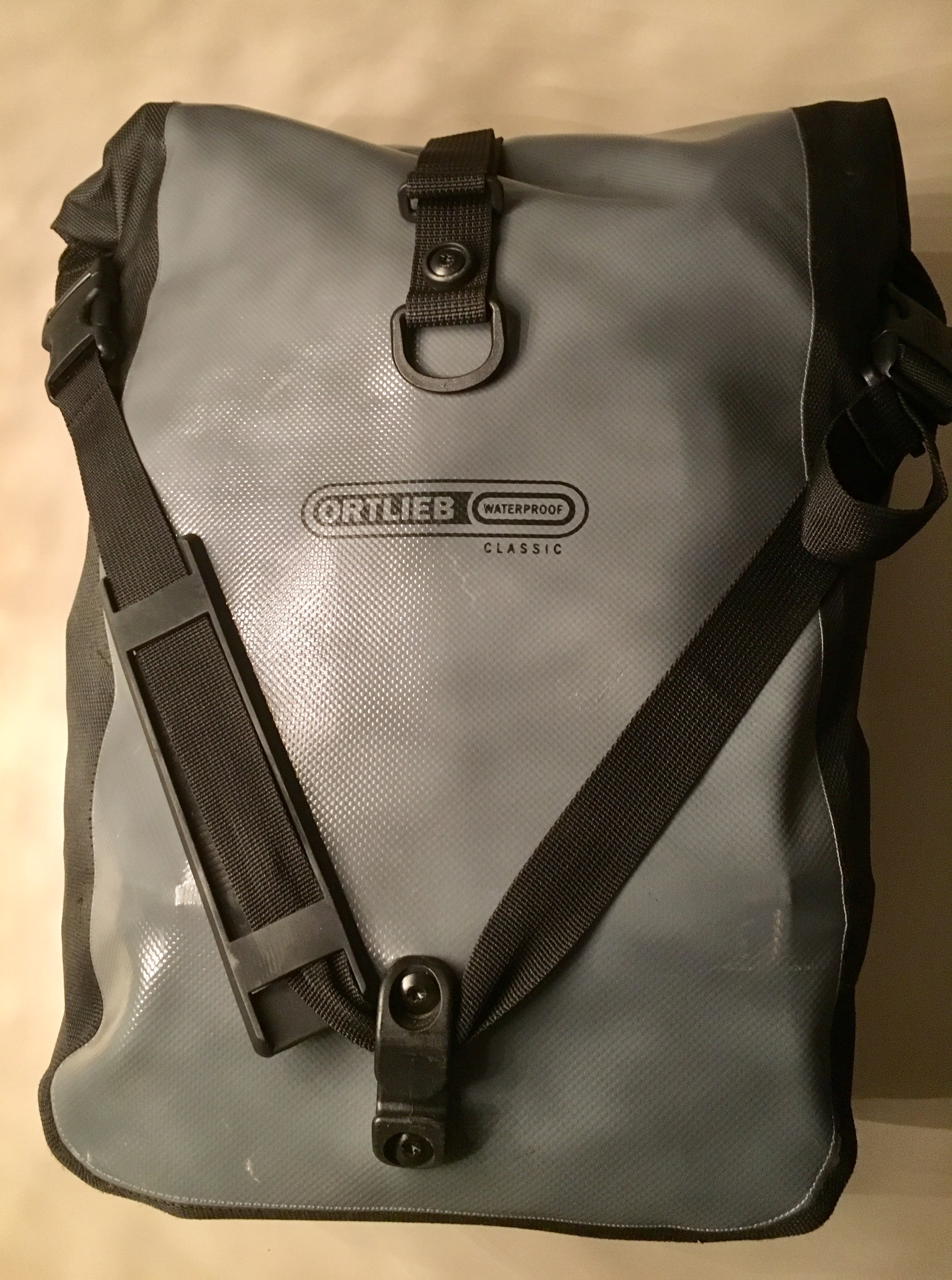 Dit is de Ortlieb Frontroller Classic als hij ingepakt is.