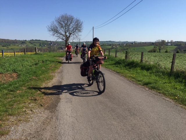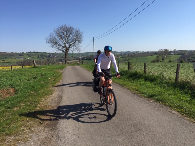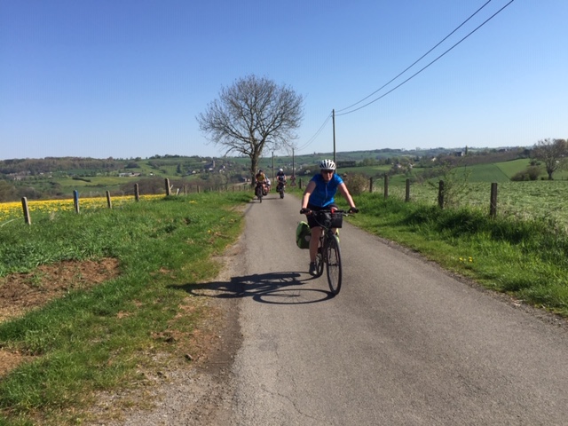 Pasen is voor velen het eerste fietskampeerweekend na de winter. Ook wij hadden sinds oktober niet meer in heuvelachtig terrein gefietst, dus onze klimspieren moesten uit de slaapstand worden gewekt. Dat kan door ze rustig te laten wennen op een mild hellend traject, maar je kunt ook kiezen voor shocktherapie door gelijk een berggeitentocht op het menu te zetten. Organisator Ton koos voor het laatste: meteen de beuk erin door voortdurend op en neer te gaan met als resultaat 1300 hoogtemeters. Op verzoek van velen was er ook een wat korter alternatief, dat weliswaar onder de 1000 hoogtemeters bleef, maar ook een onrustig hoogteprofiel had.