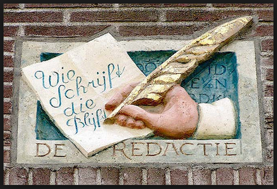 Met "gevelsteen" en "de redactie" en de hulp van Google was het slechts even scrollen.