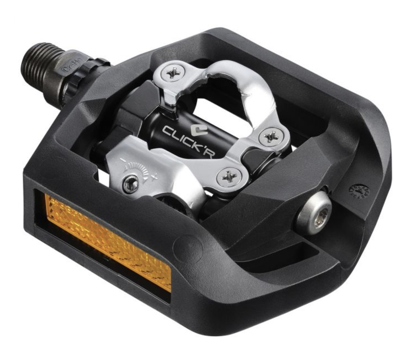 Ik heb, een set eenzijdige SPD-pedalen en fiets-sandalen (die vreemd genoeg slechts in heel grote maat-stappen te koop zijn - koop ze liever te groot als te klein, dat is veiliger voor je tenen). Mijn wederhelft vind klik doodeng dus heeft gewone pedalen, maar ook fiets-sandalen. Eerder reden we op gewone pedalen en op Teva-sandalen, maar Teva's zijn toch wat te slap (de betere Décathlon sandaal is misschien beter, dat is ie in ieder geval wel voor alledaags gebruik). Nadeel van de Teva of Décathlon sandaal is het profiel dat je voet in een niet per sé ideale houding dwingt, en dus het gebrek aan stijfheid.
