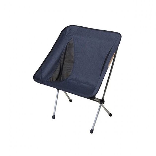 Helinox kloon. Ongeveer 900gram. Erg robuust, relatief licht en laag genoeg om makkelijk bij te koken enzo. Ik vind voor mezelf het extra gewicht zeker opwegen tegen het extra kampeer comfort. Na drie jaar nog steeds erg blij mee. Ik heb 'm van een andere website maar hij ziet er precies zo uit.