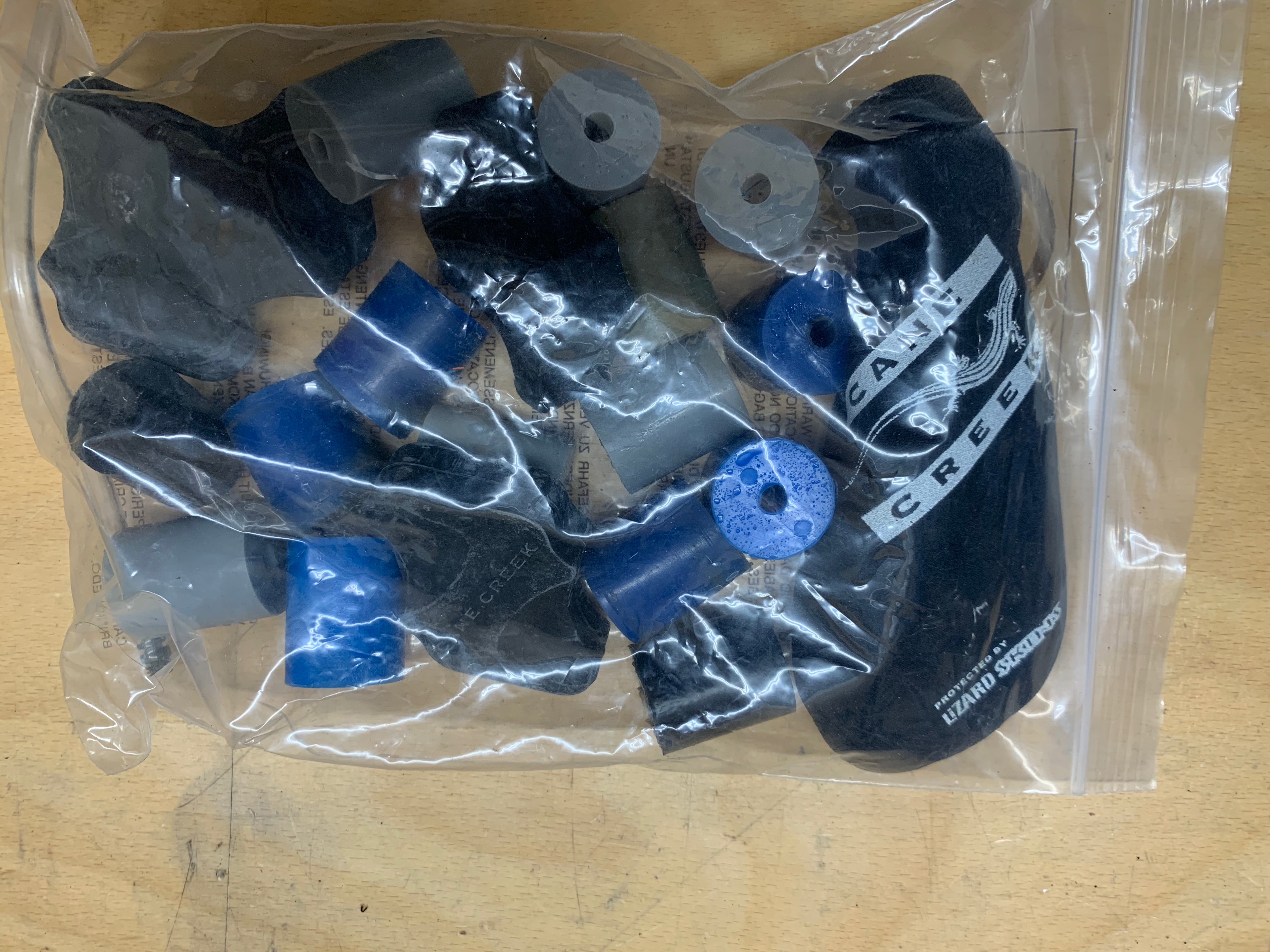 De pen wordt geleverd inclusief de verschillende verende blokken. Zo kan je de pen aanpassen op je gewicht en op hoeveel vering je wilt hebben.