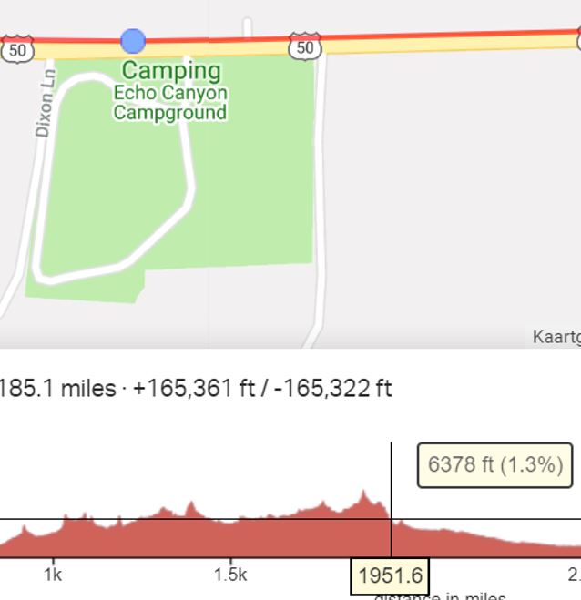 Met de juiste gok van Willem is de camping niet moeilijk meer (op 1951.6 mijl vanaf de start in het westen):