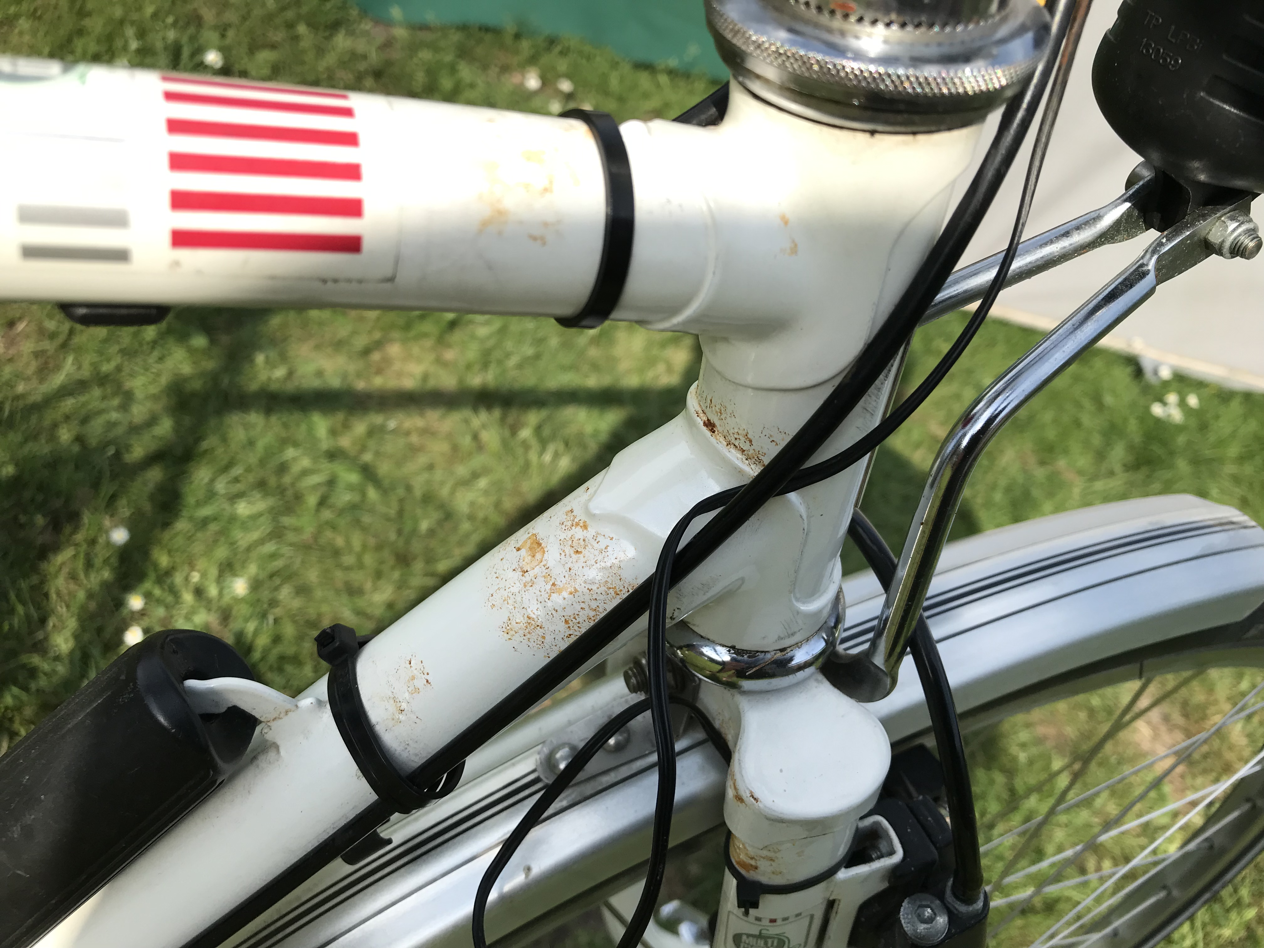 dat was ook mijn advies. Wees heel voorzichtig en haal de verf eraf om te kijken hoe groot de beschadiging is. Maar ja, de fietsenmaker had al gezegd dat het geen kwaad kon... .