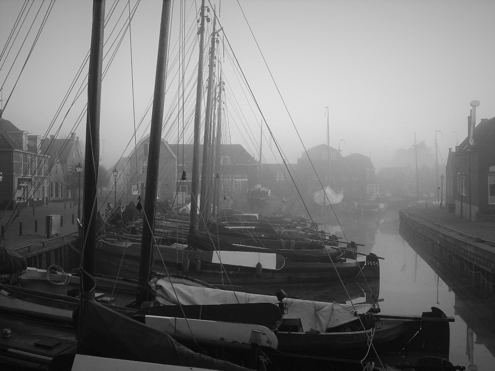 (Oud) sfeerplaatje van de haven van Spakenburg in de vroege en stille ochtend, tijdens het fietsen van de LF9.