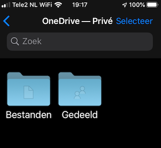 Open op je iPhone de Bestanden App, kies dan bladeren. Je krijgt nu een lijst met locaties waar je bestanden hebt staan.