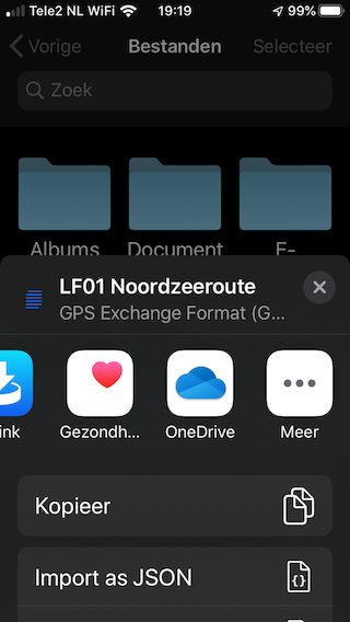 Als je bovenstaande bijdragen had gelezen had je gezien dat het niet "meer" lukt om de track te importeren. Tot aan het installeren van iOS 13 ging het bij mij prima, bijvoorbeeld op de hierboven beschreven wijze.