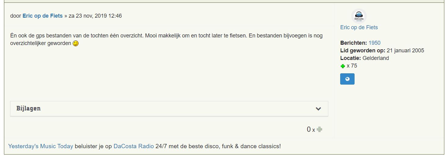 Het is onmogelijk bij het testen alle hoeken en gaten van de site af te lopen. Vooral zorgen dat de site op alle schermbreedtes goed werkt is een flink karwei. Mocht je iets tegenkomen wat niet werkt, of naar jouw idee beter kan, check dan eerst of het al geregistreerd is: https://www.wereldfietser.nl/testbevindingen. Zo niet, laat het dan weten in dit topic. Geef bij bugs aan welke browser je gebruikt, en welke versie van welk besturingssysteem. Bijvoorbeeld: Microsoft Edge op Windows 10, of Chrome op Android 8. De url van de pagina kan ook helpen.