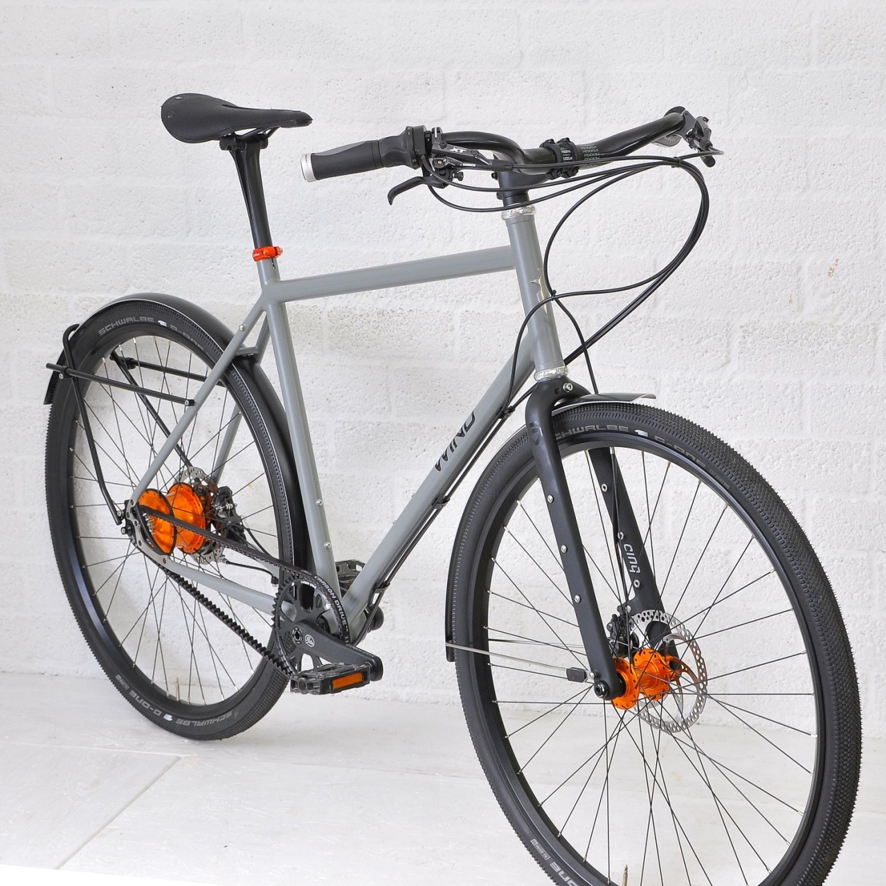Een van de mooiste stukjes techniek die Vittorio in de winkel heeft staan is toch wel deze Girardengo. De fiets heeft een Campagnolo schakel systeem uit 1948. De renner zet met hendel 1 zijn wiel los, met hendel 2 legt hij achteruittrappend de ketting naar een ander tandwiel en zet daarna met hendel 1 zijn wiel weer vast.