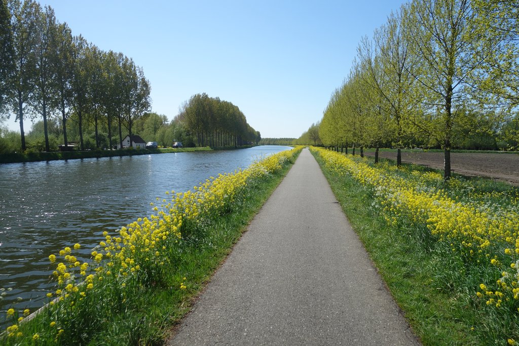Vandaag 5-7 Bft Oostenwind voor een extra frisse neus. Tracé fietssnelweg Groningen - Assen. Hier is het doorgaans druk met wandelaars / hardlopers / fietsers / meefietsende roei coaches en her en der een verdwaalde hengelaar.