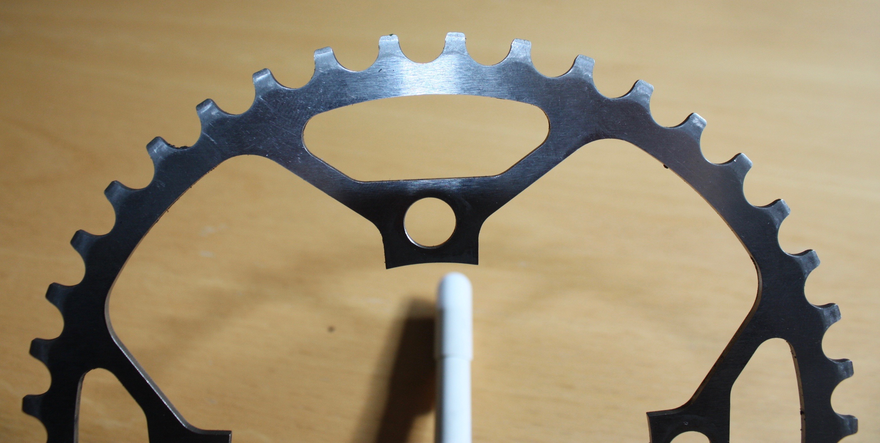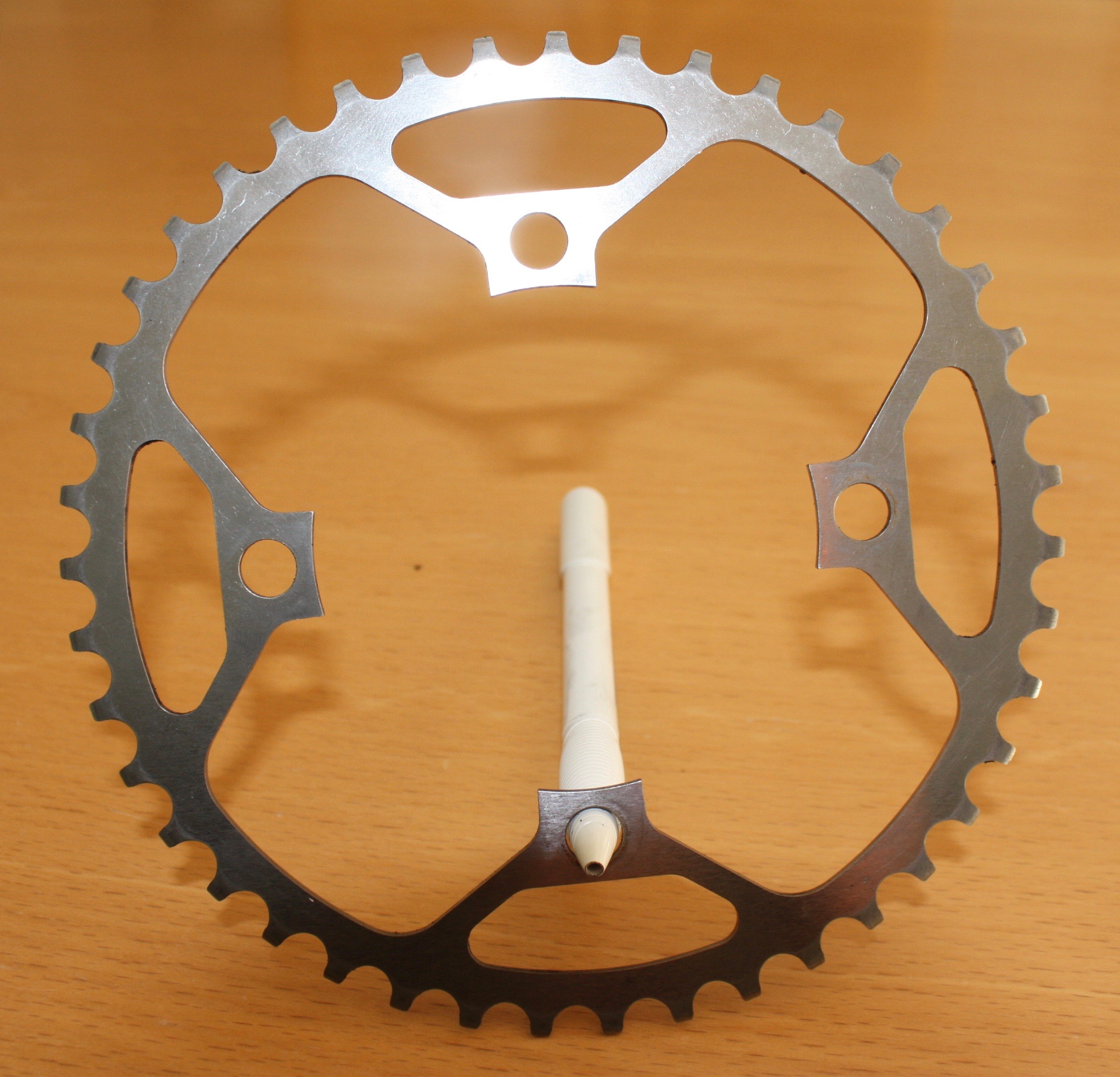Deze week Idworx Heggemann aerospace singelspeed stalen voorblad 43T gekocht. Dit bij de Vakantiefietser Amsterdam, omdat deze dit tandwiel voor een mooie prijs aanbood. Voorheen vier aluminium tandwielen van Truvatief 42T versleten. Hier gemiddeld 14000 km mee gefietst per tandwiel. Gemiddelde prijs voor een Truvatief voorblad afgelopen jaren: € 30,00. Dus € 120,00 voor 56000 km aan vier aluminium tandwielen van Truvatief versleten. Prijs voor Idworx Heggemann aerospace singelspeed stalen voorblad 43T € 135,00 Een Heggeman voorblad zal dus zeker 60000 km moeten kunnen meegaan om prijstechnisch te kunnen concurreren met Truvatief. Ben benieuwd! Tevens zullen vermoedelijk mijn KMC X1 kettingen nu met dit nieuwe tandwiel ook wel wat langer mee gaan, omdat het voorblad nu, minder aan slijtage onderhevig is. Ben benieuwd! Los van dit alles vind ik het wel leuk om de beste onderdelen op mijn fiets te hebben.