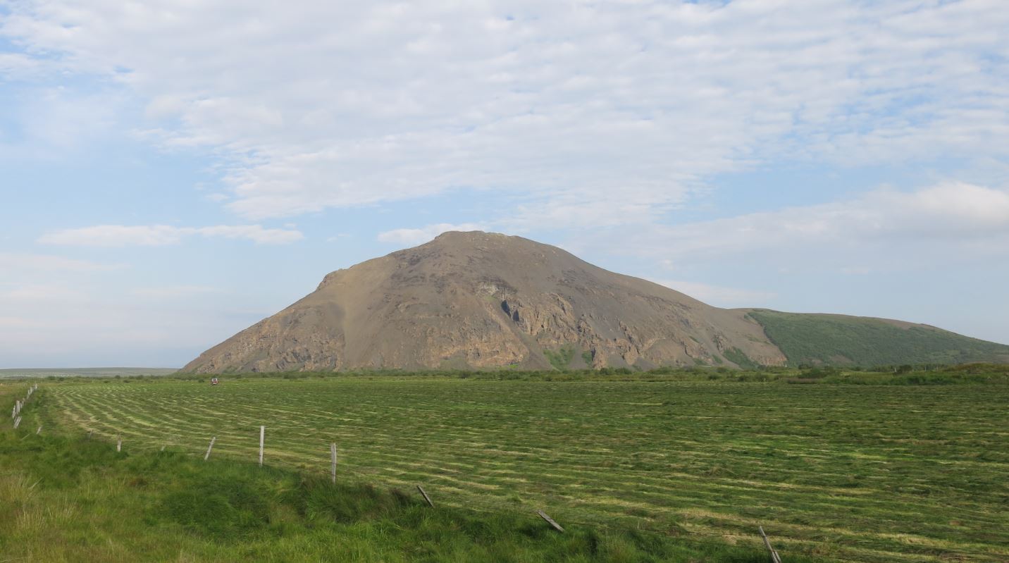 Ik heb gekeken op Google satelliet. Dergelijke heuvels zag ik vooral ten noorden van Reykjavik. Wat opvalt zijn alleen de zuidelijke (zonnige) hellingen groen begroeid. Zo ook rechts op de raadselfoto. Dan kan je de richting van de camera ongeveer bepalen. Maar het is wel een heel gezoek, hoor. Die "navel" in het midden van de bruine steenklomp moet toch ergens opvallen. Dus geen witte huisjes, maar in wit plastic verpakte gemaaid gras.... ik noem ze altijd zelf rolmopsen.... :wink: