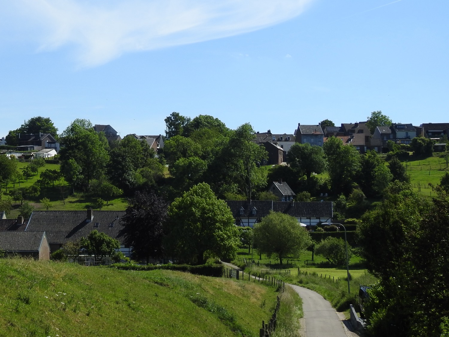 Ik zou eerder, gezien die witte vakwerkhuizen, denken aan Zuid-Limburg. Noorbeek, Epen, Mechelen of daaromtrent en die hoog gelegen huizen op de achtergrond zouden pal over de grens in de Voerstreek staan. De lantaarnpaal op de voorgrond is van hetzelfde type die ik op Streetview in Noorbeek heb gezien. Maar ik moet straks zo weg....
