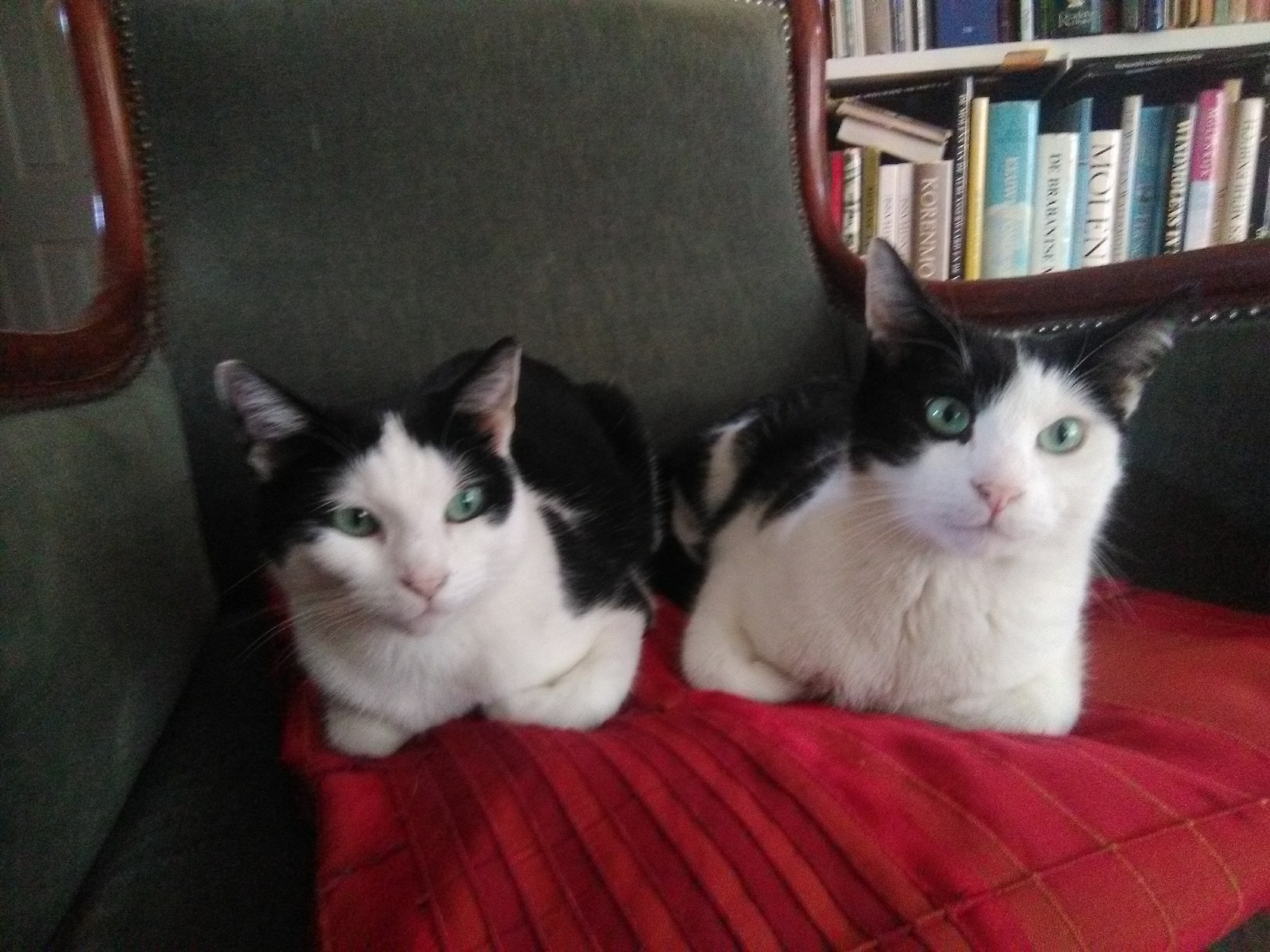 Ze zitten vaak op mijn schoot of schouder en slapen in bed naast me. Zo lief en aanhankelijk. Dat doet mijn humeur goed.