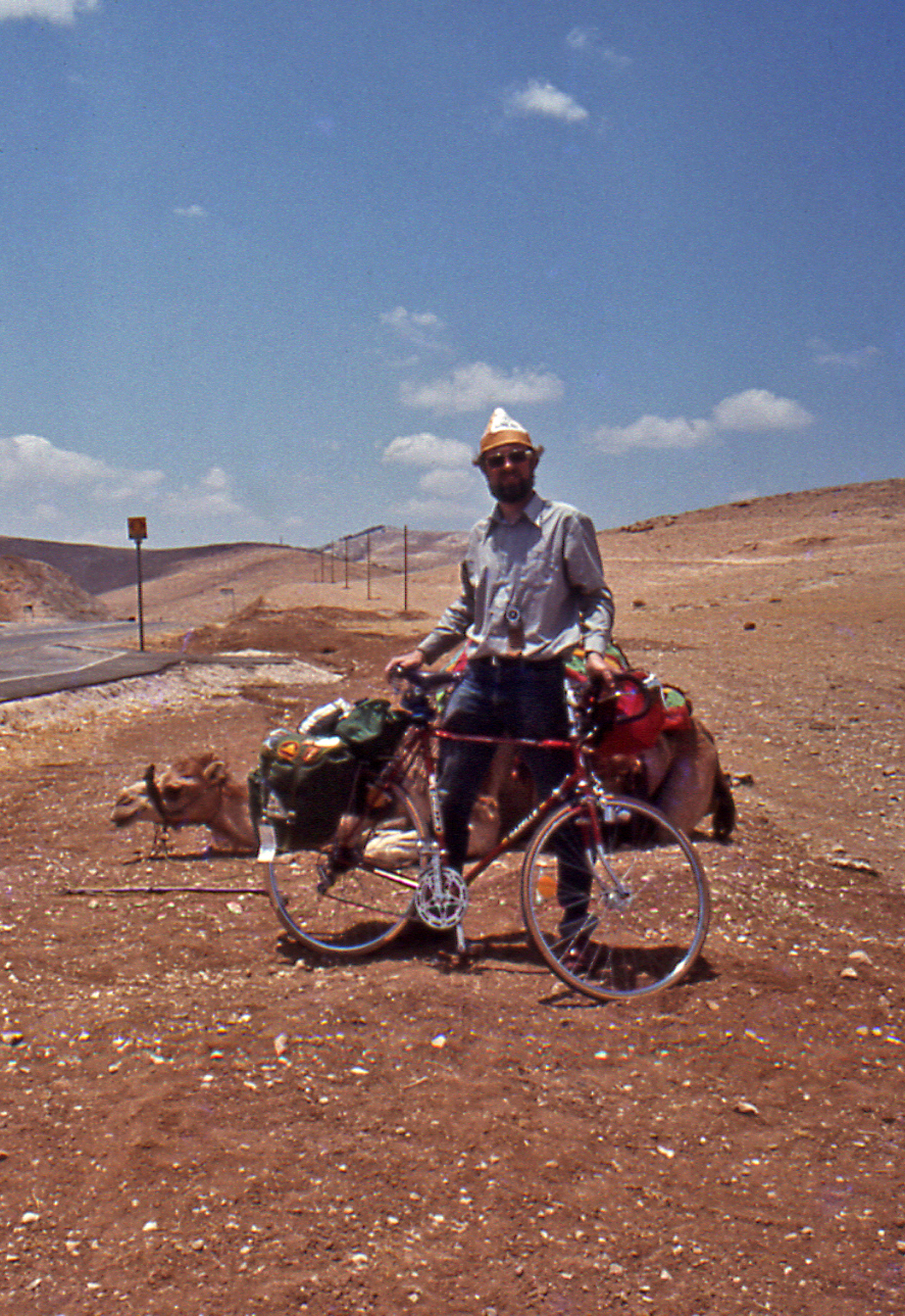 Ik heb vier dagen door de Jordaanse woestijn gefietst, het was 38 tot 41 graden! Het was in de maand juni, de zon echt verticaal boven me, amper schaduw op de grond. Watertank van 5 liter aan de bagagedrager, onderweg een of tweemaal bijgevuld. Ik was toen 28 jaar en ik verbaas me (nu 69 jaar) nog steeds over hoe ik het voor mekaar had gekregen! Zou ik nu niet meer durven. Fietshelmen bestonden toen nog niet; ik droeg een kova tembel (een Israëlische kibboetshoed) op mijn hoofd. Lichte overhemden met lange mouwen. Veel smeren. Het grote verschil was dat de lucht erg droog was, niks geen geplak onder je oksels. Het fietsframe kon ik niet eens aanraken, veel te heet! Mijn spuug erop kookte.