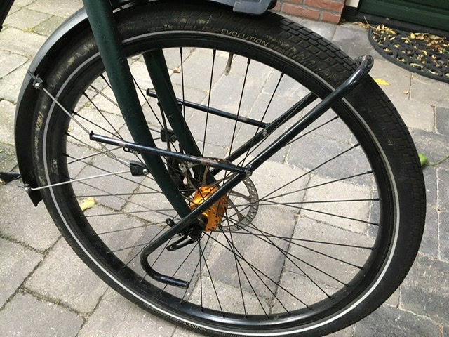 Te koop, zwart stalen voordrager van het merk Tubus, type Tara Lowrider. Dit is de meest stabiele voordrager die Tubus gemaakt heeft, ik verkoop hem omdat mijn nieuwe fiets 29” wielen heeft en er daardoor te weinig ruimte tussen mijn band en drager zit (zie foto’s).