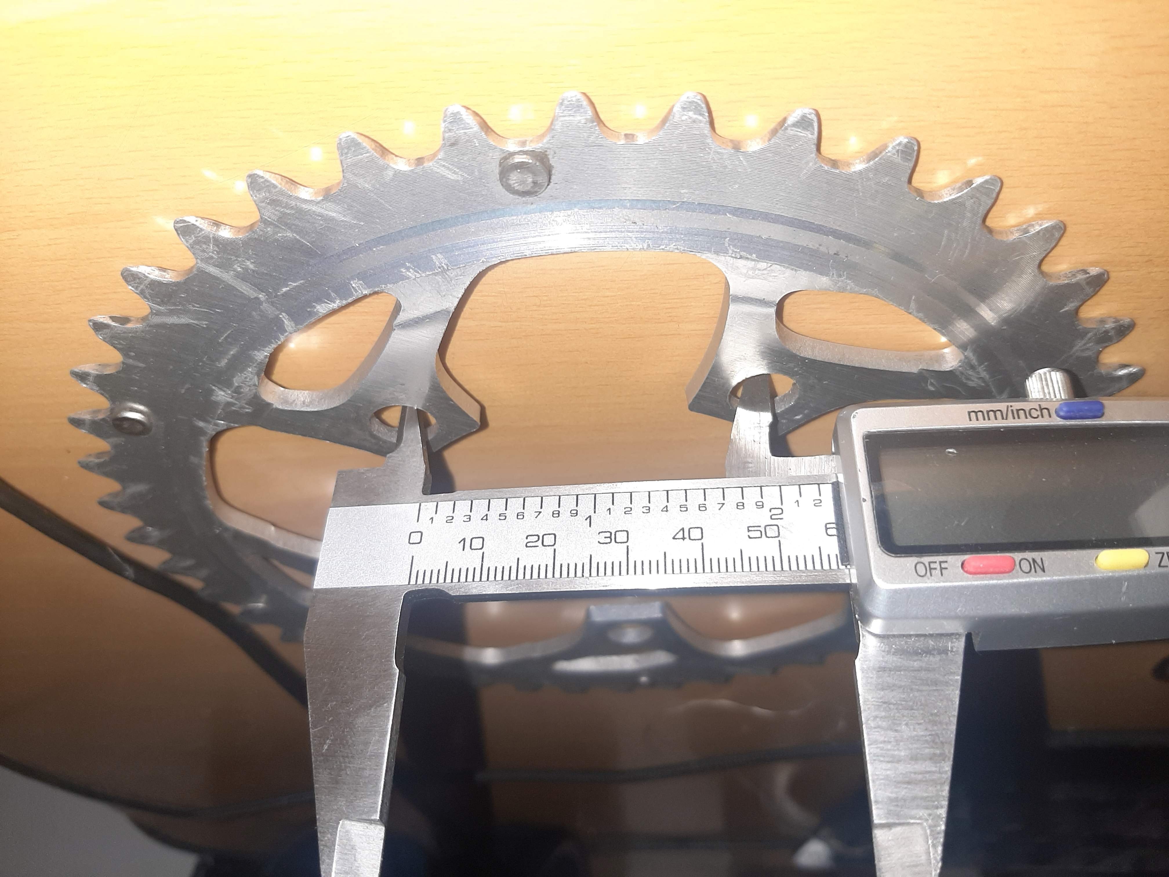 (Wat bedoel je met "n=4"? 't Is toch wel ca. 2cm bij mij zo zonder kettingspanning want zonder kettingbladen nu. Maar dus ok als ze werkt en ver van de spaken :) )