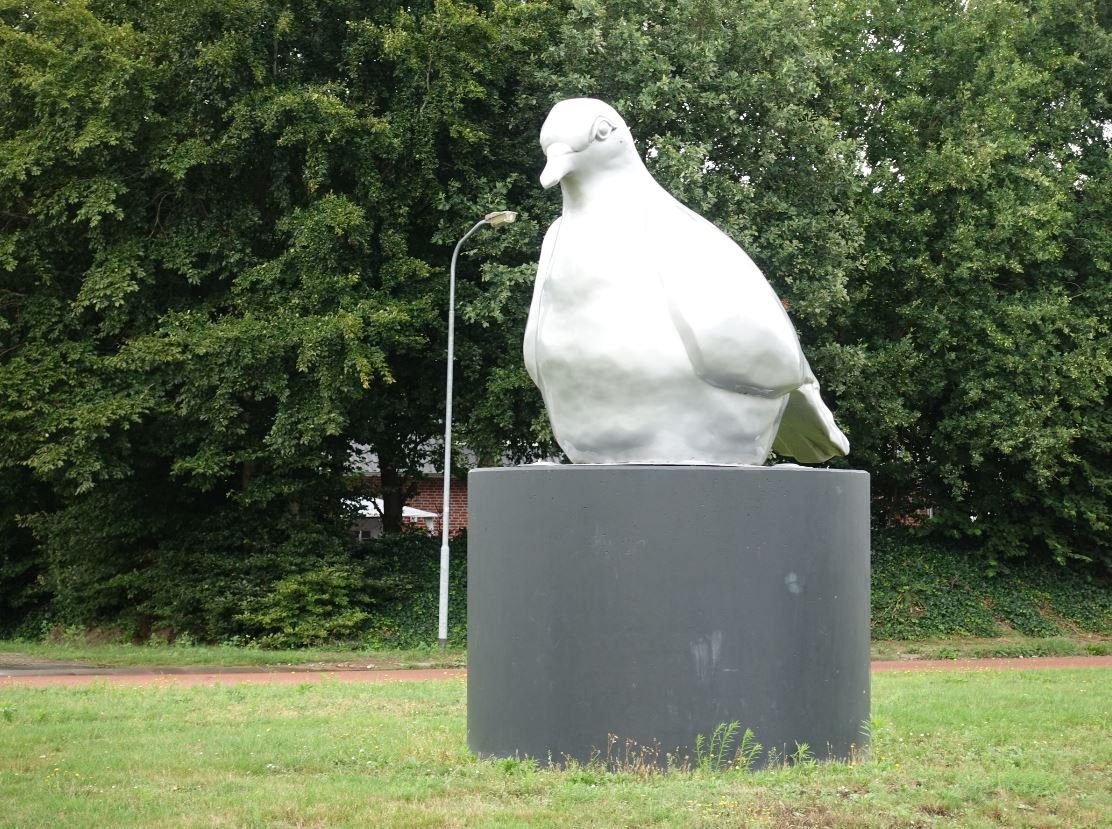 Helemaal goed. Het kunstwerk heet Vredesduif en is gemaakt door Marte Röling. Vind het wel een vreemde plek, zo'n uithoek op een industrieterrein.