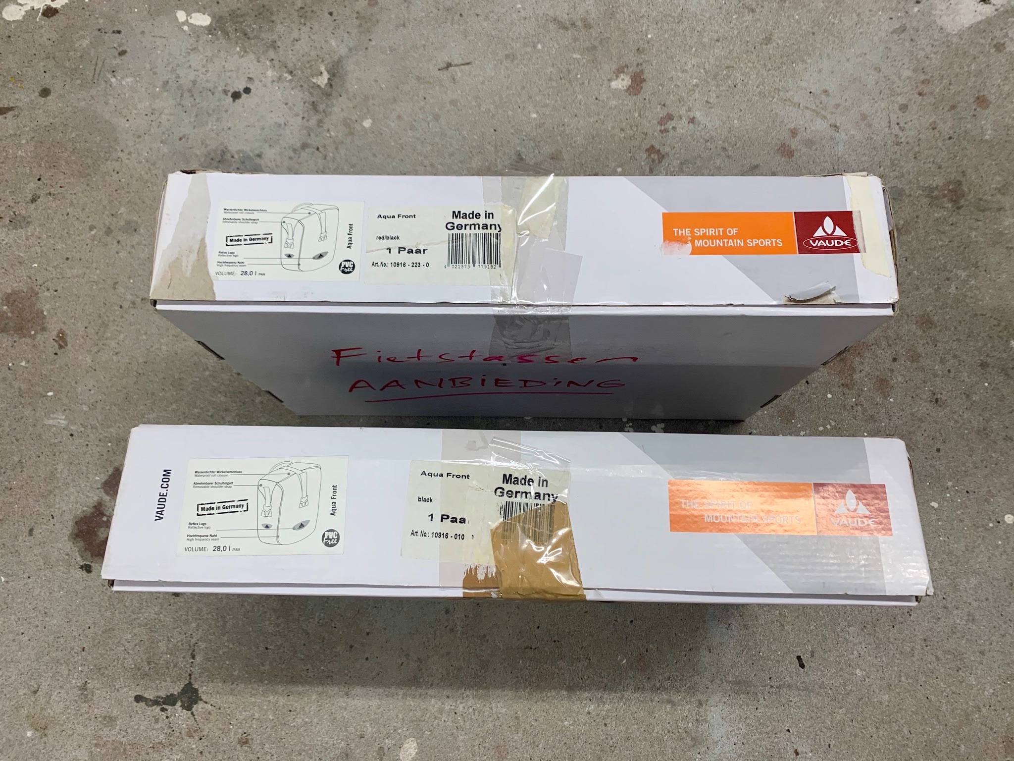 We hebben twee, in hele goede staat, setjes voortassen te koop. We gebruikten ze op onze Santos RaceLites maar op onze nieuwe fietsen passen die niet meer. Tassen zitten nog in de doos. Zijn wel gebruikt uiteraard maar nog prima in orde.