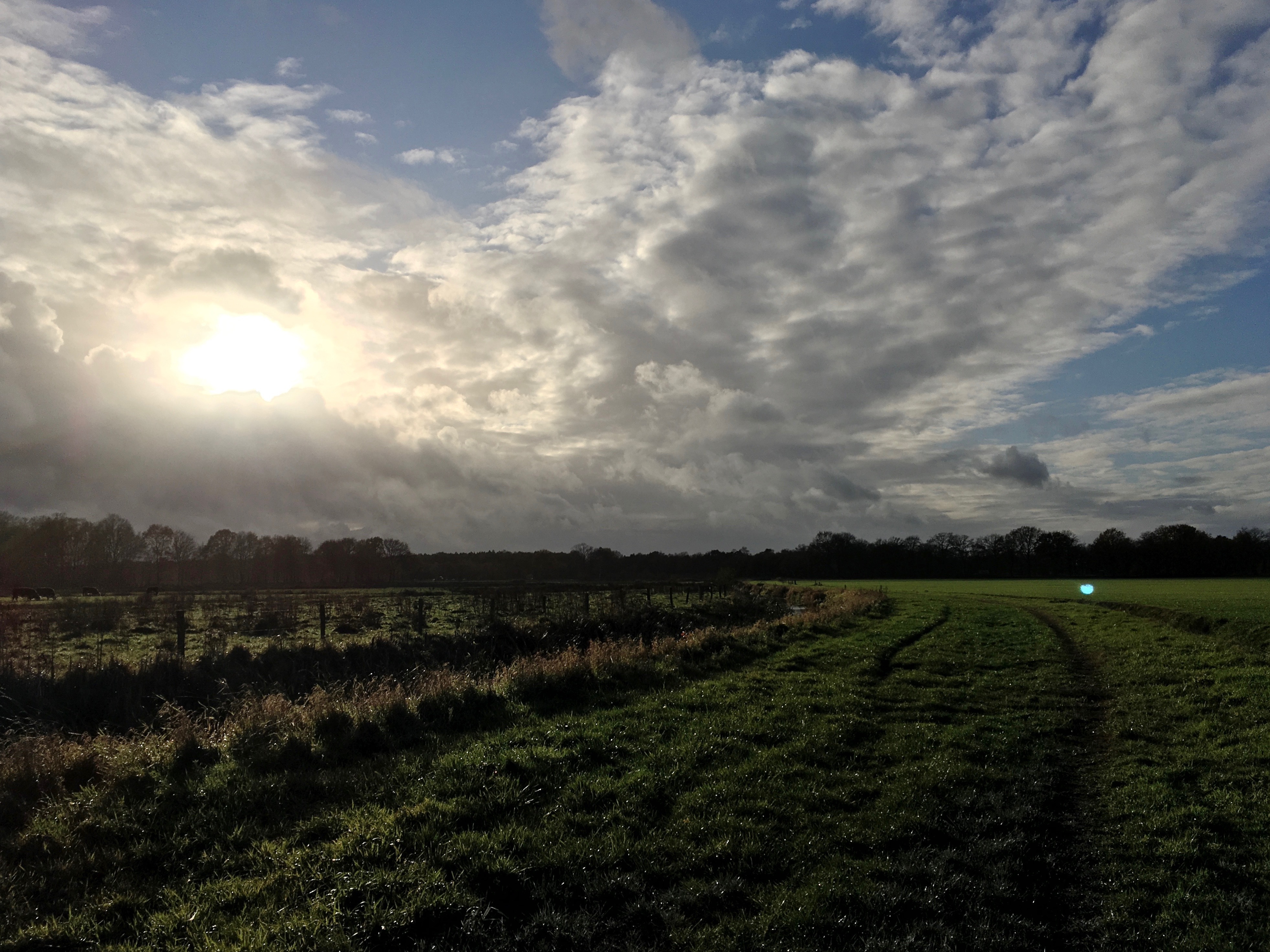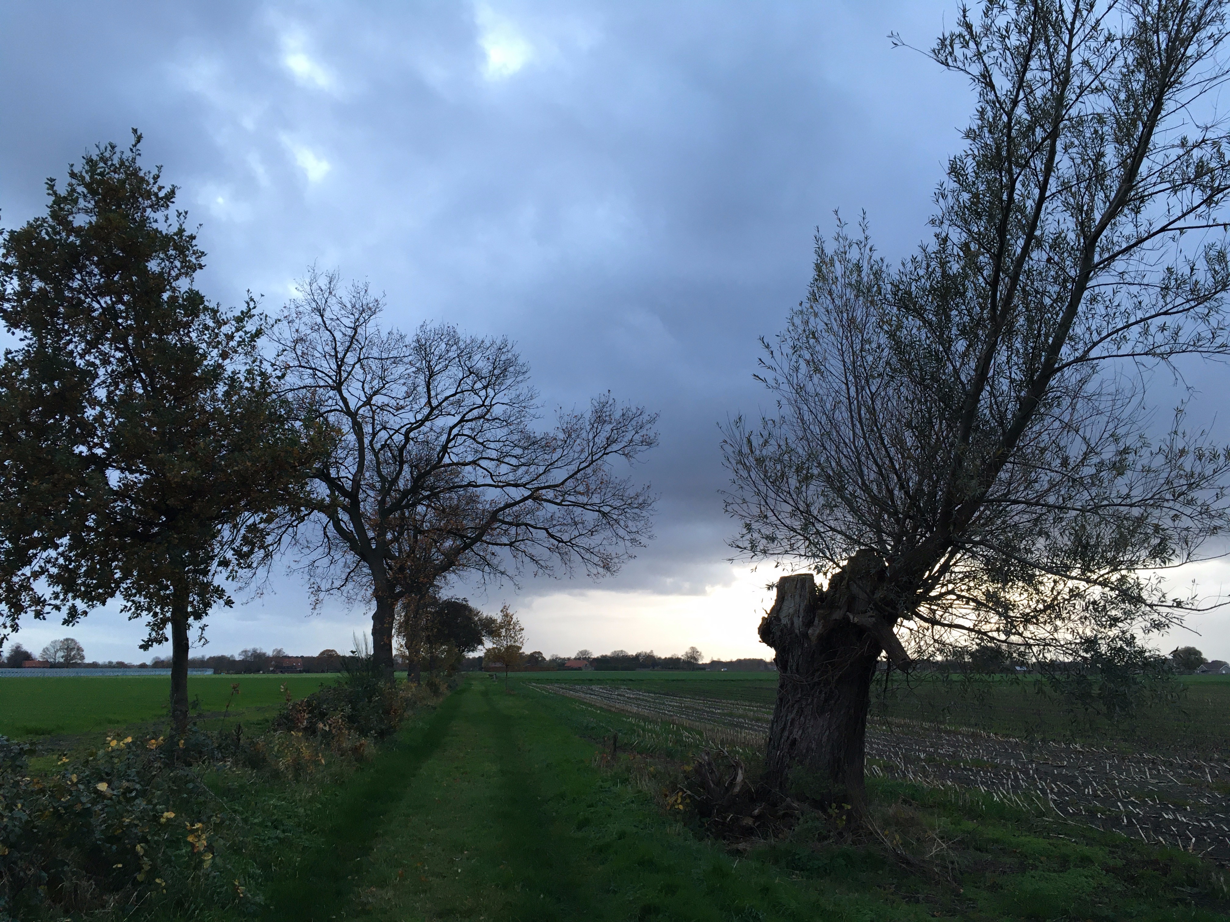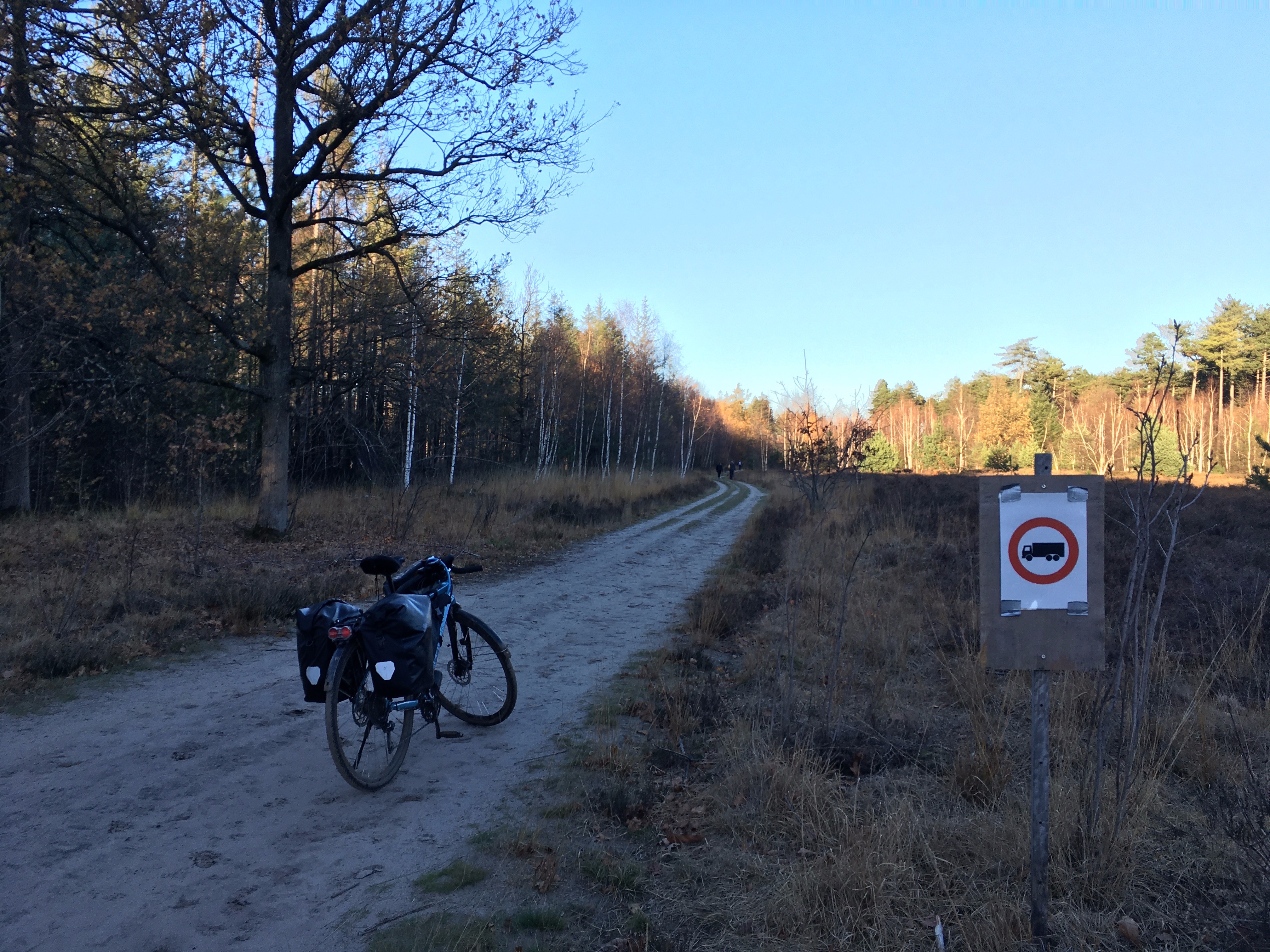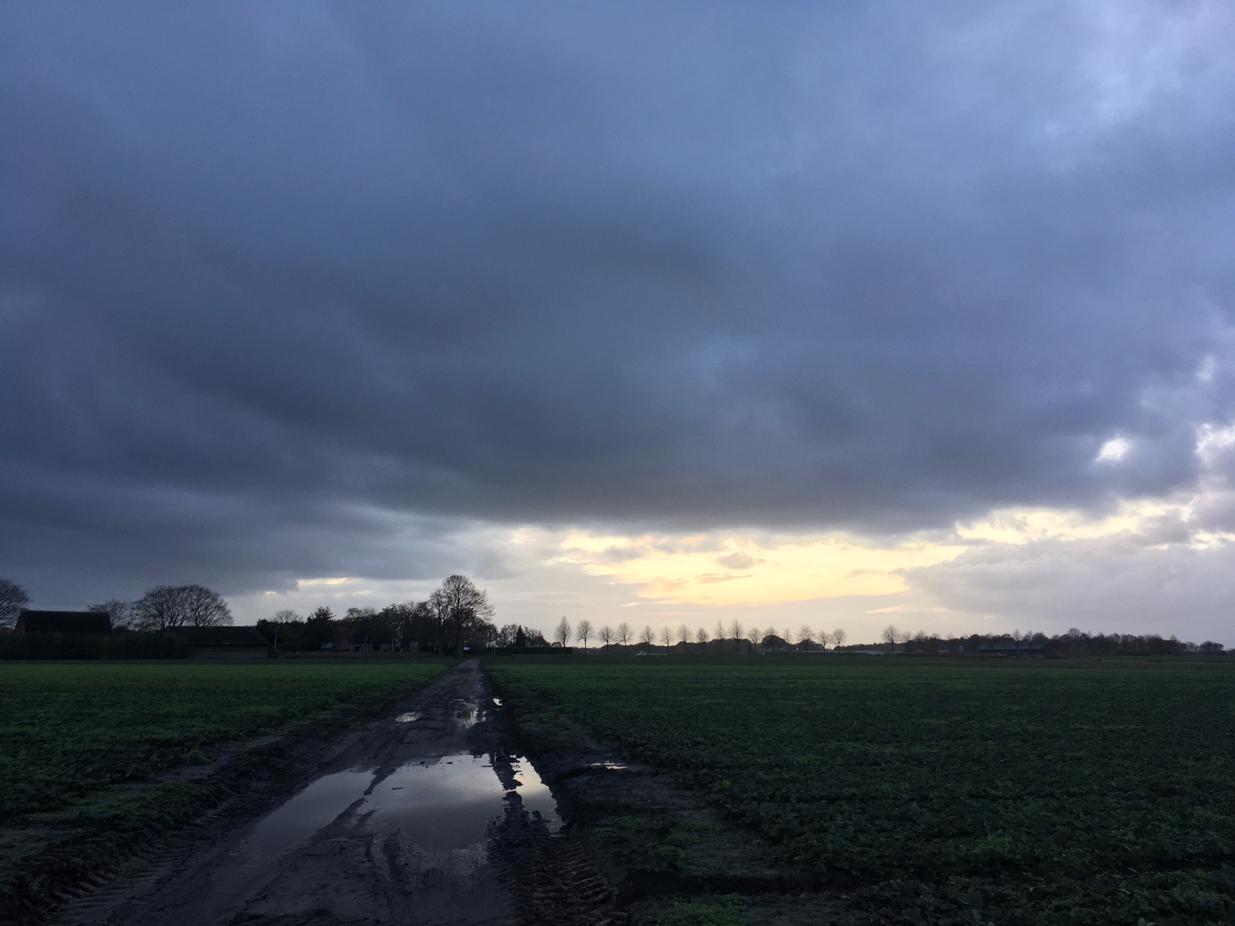 Nog een pittoresk plaatje op 2km van huis. Net voor het donker binnen! En da's maar goed ook, want er zit geen licht op deze fiets. Ik moet toch nog even wennen aan de korte dagen. Door het mooie weer er niet aan geacht voor de zekerheid nog lampjes en een reflectievestje mee te nemen.