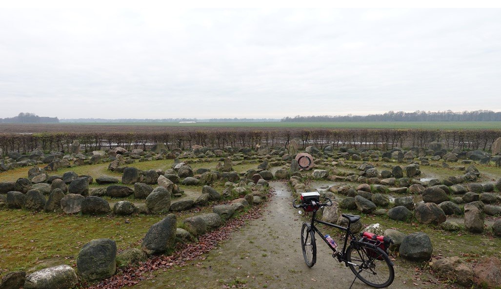 Inderdaad, de steen in het midden zie je net achter de fietstas.