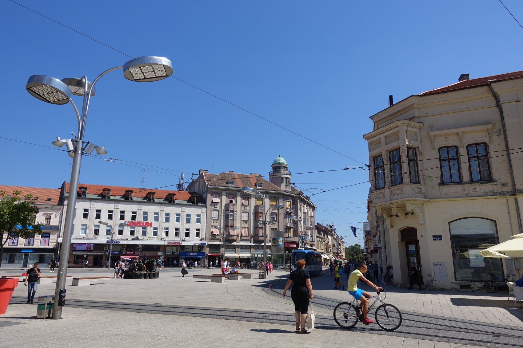 Ik googelde eerst op Konzum en trof die in Hongarije aan. De trams van Boedapest zijn geel, dus heb ik mijn zoekpoging naar die blauw-witte tram verplaatst. Ook in Nederland zijn de trams in diverse steden niet gelijk, dus waarom niet in het buitenland?