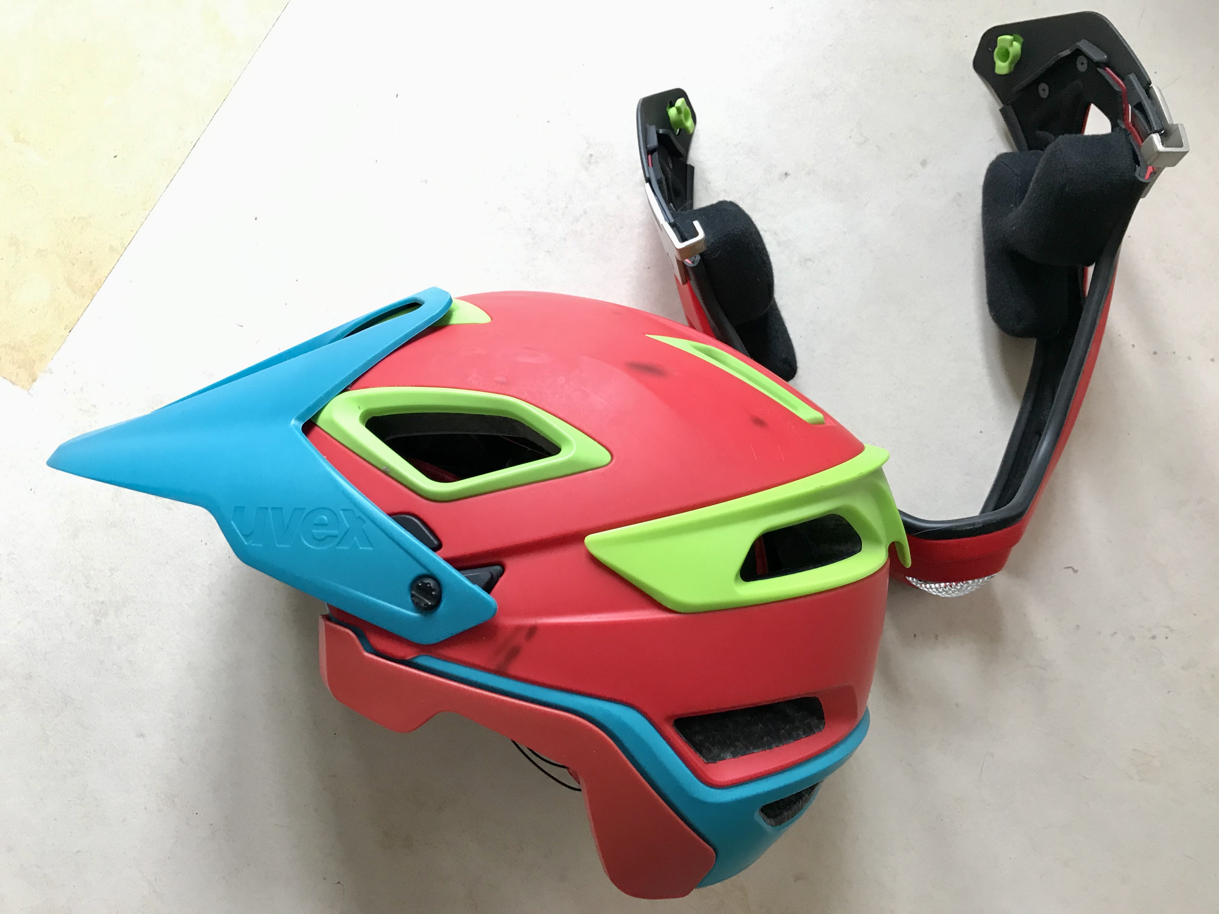 Bij deze te koop. Tassen en helm zijn een enkele keer gebruikt. Helm past mij toch niet goed en heeft een vakantie in de tas gezeten. Het is een UVEX Jakkyl, met en zonder kinbescherming te gebruiken, dus zowel voor rustig off-road als de serieuze afdaling.