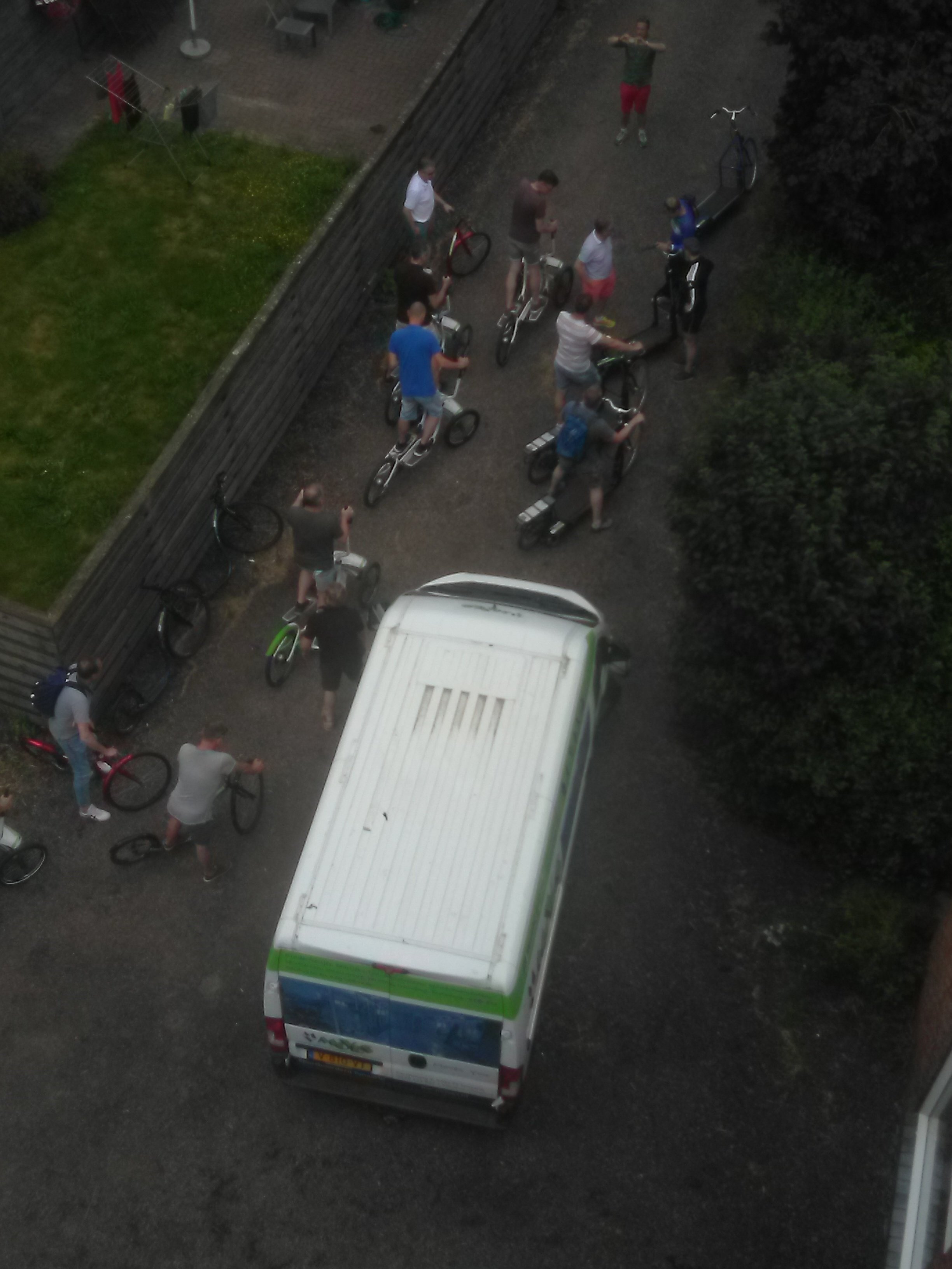 Gaan jullie gerust maar verder oplossen. Ik zie vanuit de stelling (12 meter hoog) een soort van vereniging met merkwaardige hometrainer-fietsen, nooit gezien. Er bevindt zich namelijk naast m'n molen een horeca-terras.