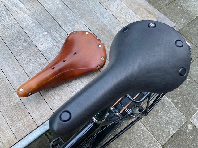 Eerste dag gefietst met een C17. Echt wel even wennen. Ik hoop dat de bolling waar ik hier over lees nog wat in gaat deuken en dan een beetje gaat lijken op mijn leren Brooks. Zadel mag zich komende maanden op de woon-werk-fiets bewijzen. Anders gaat toch mijn leren zadel mee op reis volgend jaar.
