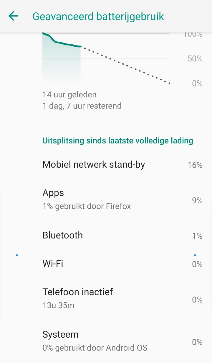 Ik had de Forumslader-app continu in beeld, om de gegevens af te kunnen lezen. Wat ik niet getest heb is Osmand continu in beeld. Mogelijk vergt dat meer vermogen, omdat het scherm continu wijzigt, en misschien kost het continu routeren dan meer processorkracht. Achteraf dacht ik eraan dat je de splitscreen-functie kunt gebruiken om beide apps in beeld te houden, dus misschien ga ik dat later nog testen.