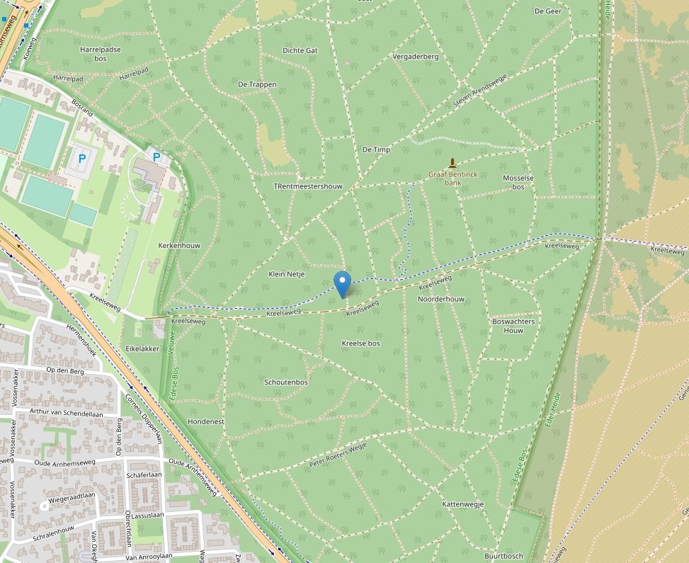 Het is ten noordoosten van Ede. Er liggen op meer plekken daar in de buurt van zulke stenen. Er is geen Streetview van, maar er gaat wel een Mapillary track langs. Ik heb niet gecheckt of deze stenen daarop te zien zijn.
