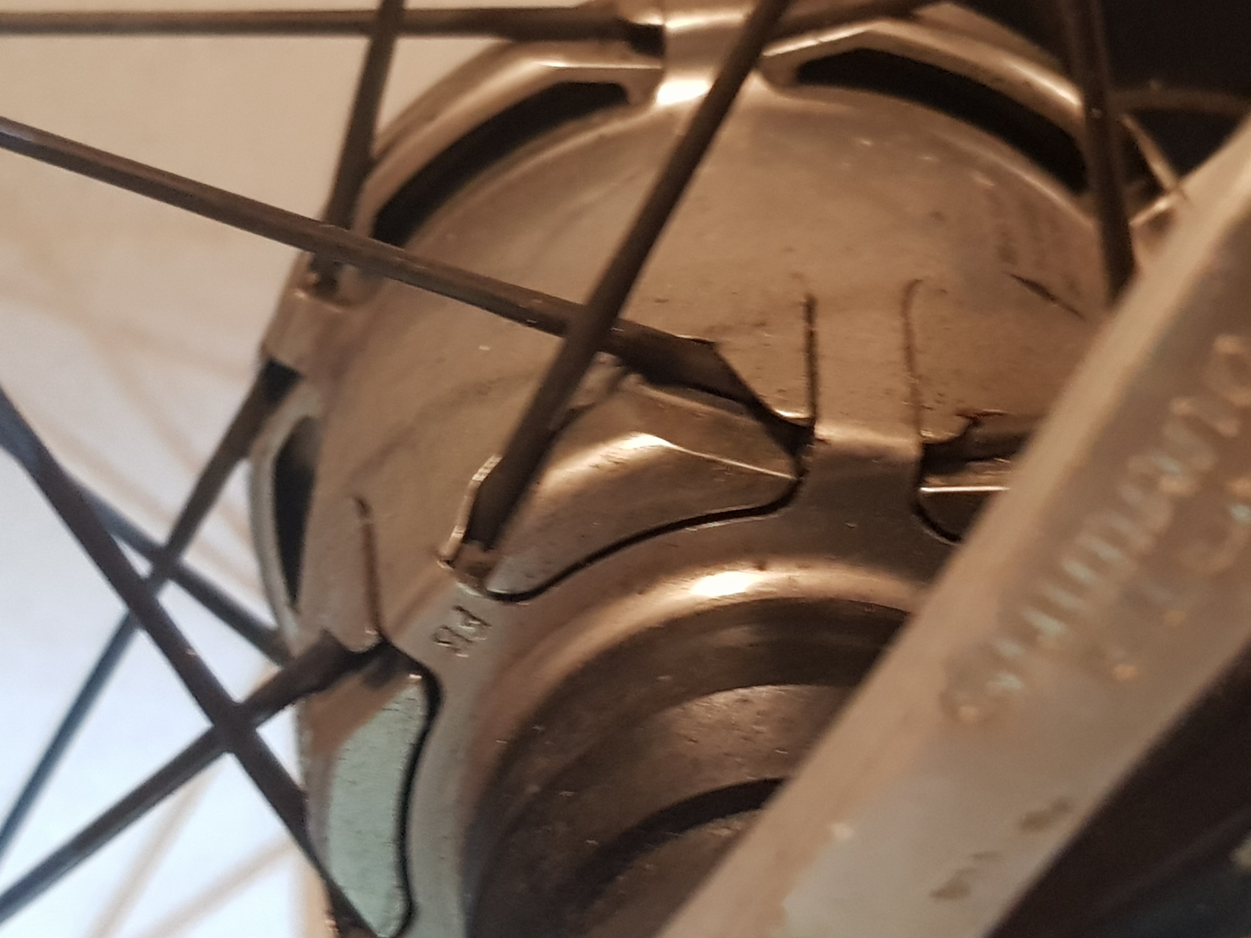 Ik probeer twee foto's van de voornaaf bij te sluiten, de achternaaf is een "gewone" versnellingsnaaf, ik heb niet eens gekeken hoeveel versnellingen (maar dus wel met dezelfde spaak-bevestiging).