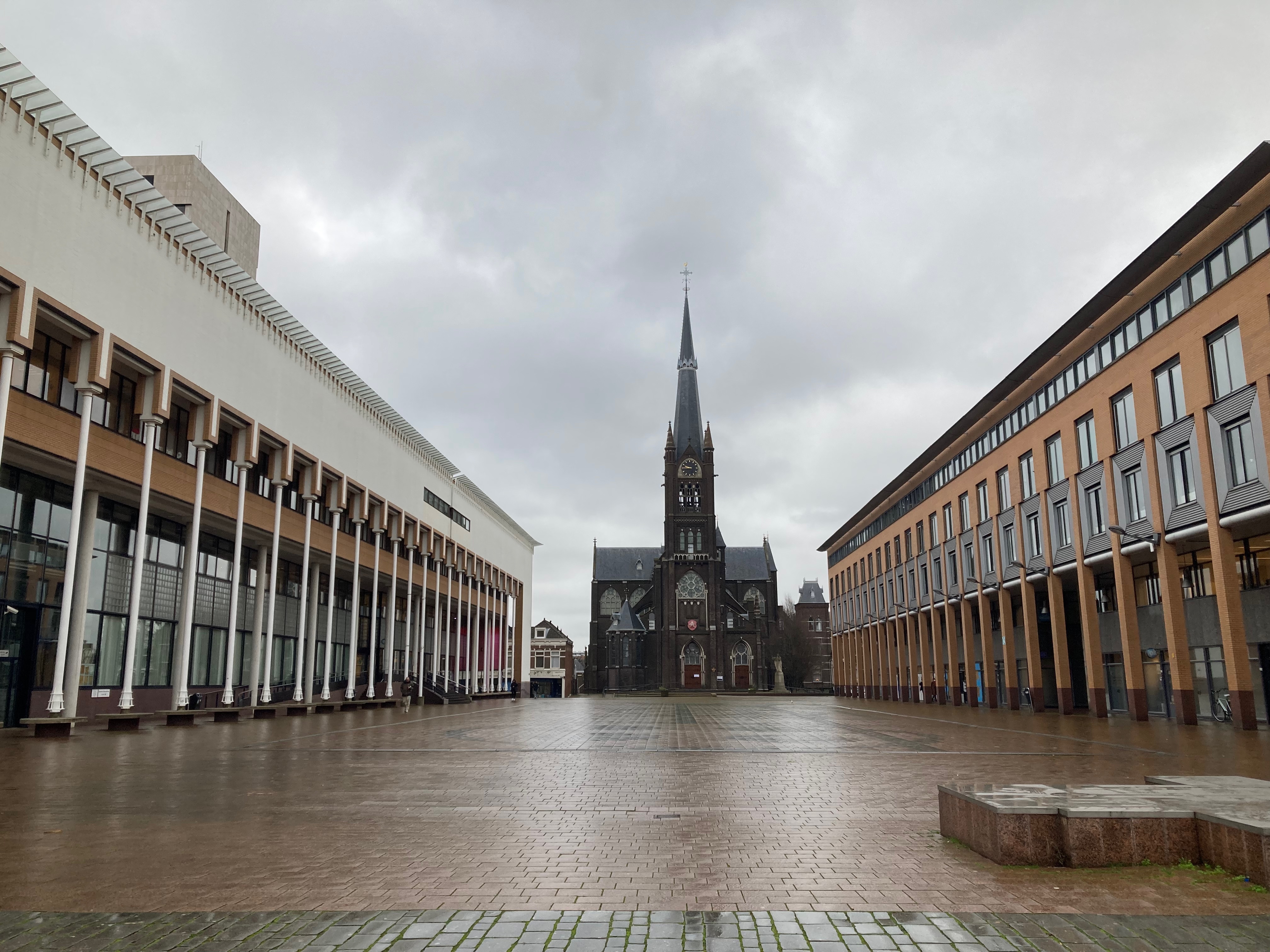 Maar wat een vloek, die bebouwing op het plein tegenover die kerk.