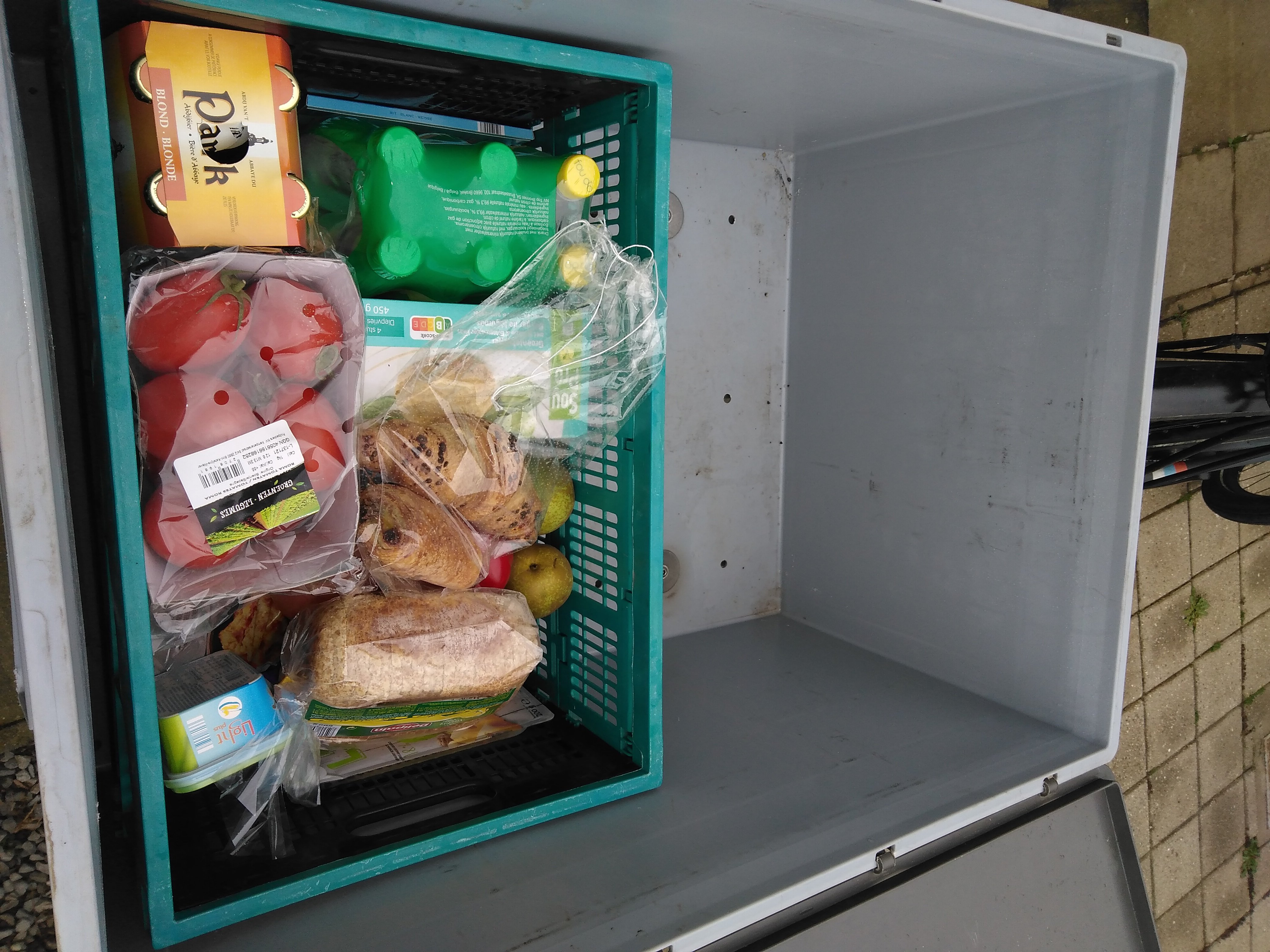 Daarom dat ik begon met een mand bovenop het bagagerek. En dat is nog eens extra ruimte bij.