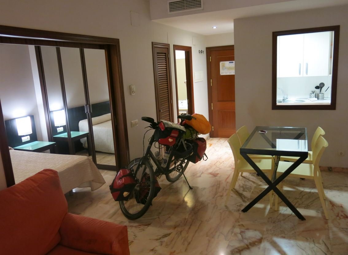 In Sevilla wil ik dat bij voorkeur ook zo doen. Dus zoek in een fietsvriendelijk hotel/pension voor eerste en laatste nacht (misschien één of twee extra) waar ik mijn doos (etc) kan achterlaten en op terugweg weer relaxed kan inpakken. Wie heeft dat ook zo gedaan en ik welk hotel (oid) was dat en hoe heb je het vervoer van en naar vliegveld geregeld?
