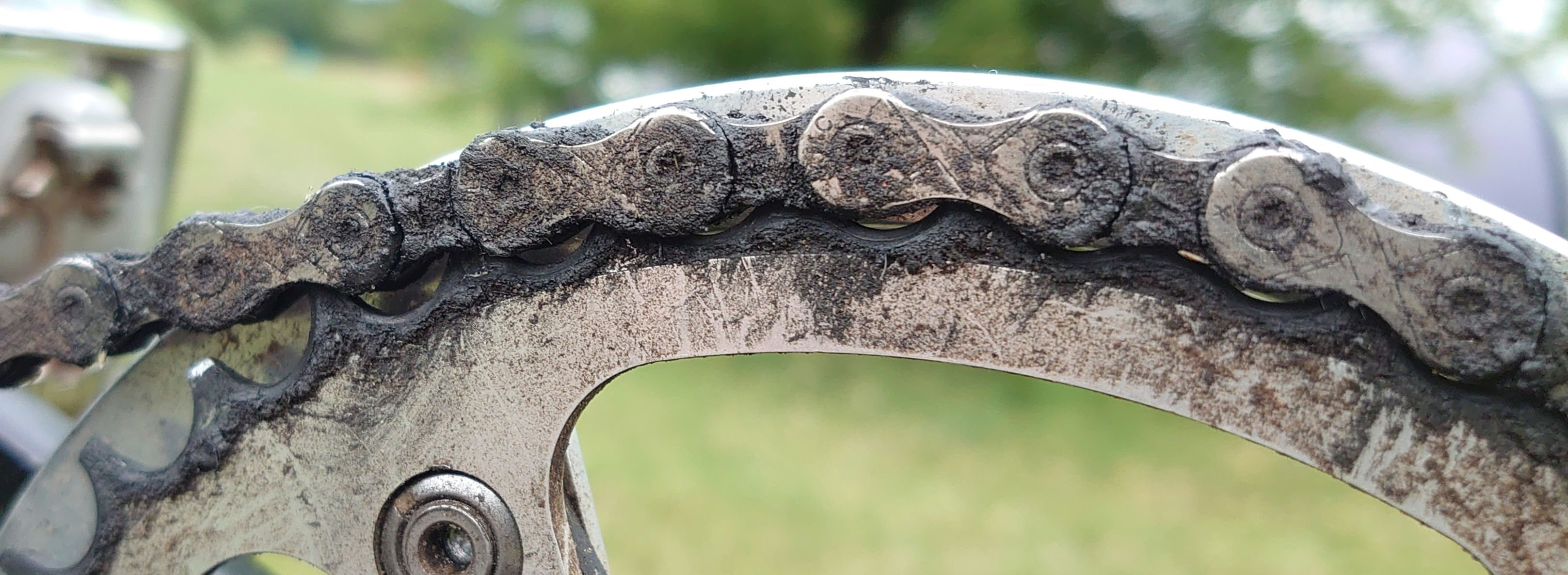Als je je ketting zo smerig laat worden, roep je de slijtage gewoon over jezelf af. Een keer in de week een lap er overheen en afvegen. Af en toe de fiets soppen.
