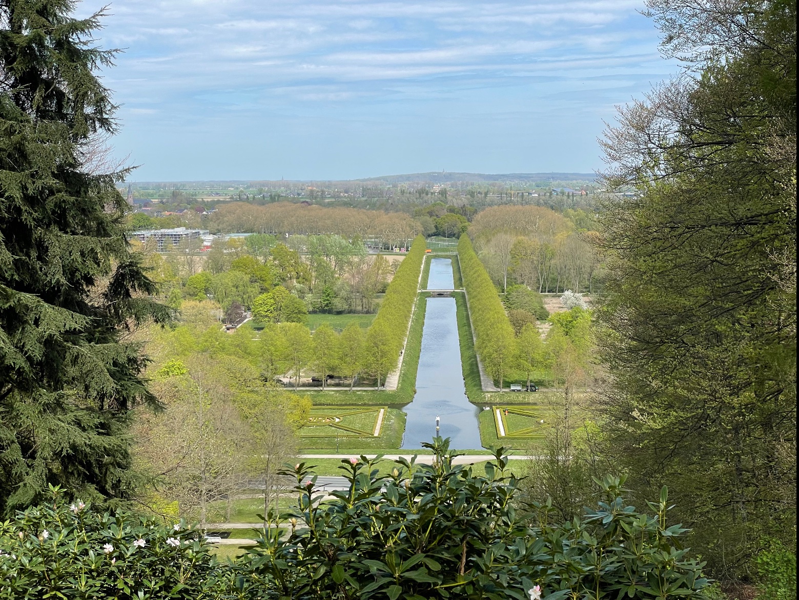 Kleve in Duitsland. Prinz Moritz Kanal, gezien vanaf de “Kupferner Knopf”. Links de dierentuin, lijn volgend kun je de kerk op de Elter Berg zien.