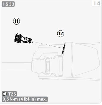 HS33: EBT-schroef (11) uit de ontluchtingsopening (12) draaien.