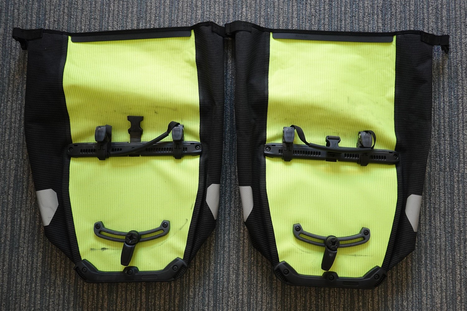 Twee fietstassen Ortlieb Back Roller High Visibility Geel.