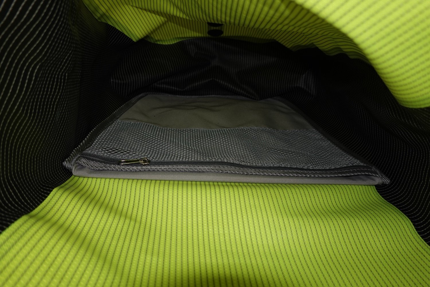 De tassen zijn verder altijd in het donker bewaard dus de kleur is echt nog fluoriderend geel. Verder zit door de hele tas reflectiemateriaal geweven zodat deze ook in het donker uitstekend zichtbaar is als er bijv. licht van autolampen opvalt.