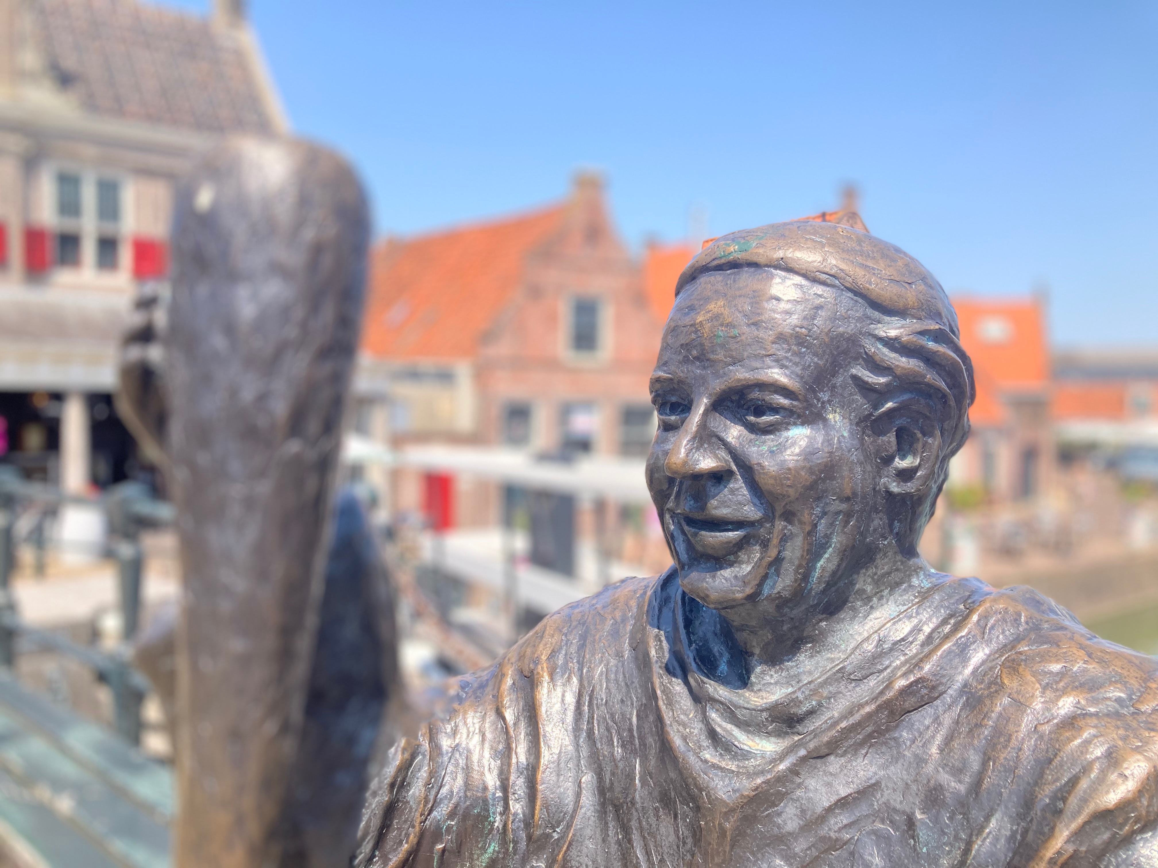 Keur ik goed. Adres van de pandjes op de achtergrond is Haven in Monnickendam. Het beeld 'de monnik' staat daar sinds een jaar of 10. Om precies te zijn op de Damsluis.