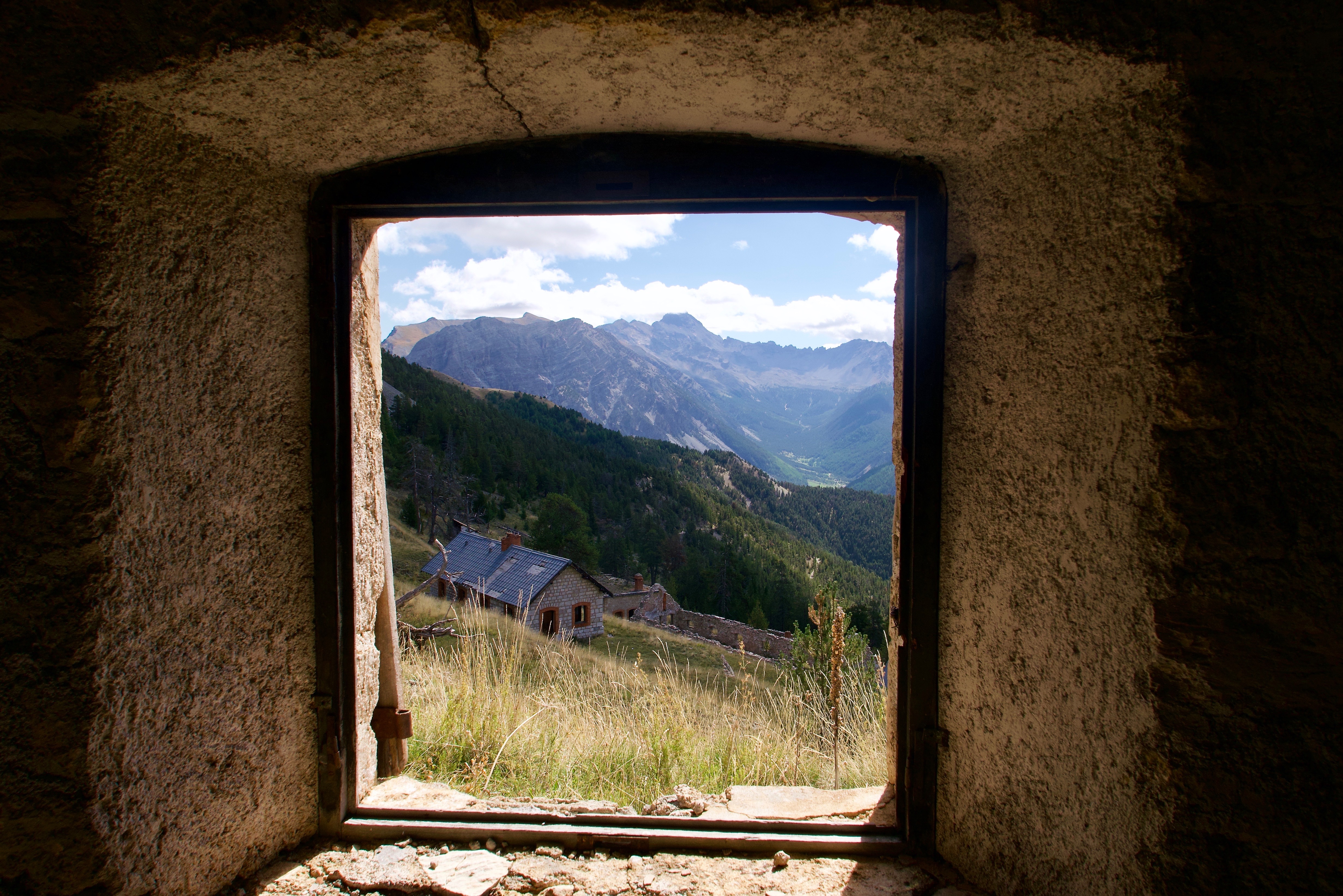 Bij een fotozaak in Gap bestel ik een nieuwe LX100, die ik na het weekend op kan halen, samen met een variabel ND filter. In de tussentijd fiets ik naar Briancon, waar ik sowieso al een driedaagse stop had gepland, dat worden er nu 4. Even buiten Guillestre, boven op een steile rots, ligt Mont Dauphin, een vestingstadje ongeveer zo groot als Naarden. De schaduwen zijn nog lang als ik er s'ochtends vroeg doorheen fiets, om eenmaal weer buiten de poorten te beginnen aan de klim naar de Col de Lauzet. Ik kom door wat kleine dorpjes en langs boerderijen, die een uitgestorven indruk maken. Slechts af en toe zie ik iemand. Ergens in het bos, dat de hogere berghellingen bedekt, word ik belaagd door een roedel jachthonden, die mij blijkbaar aanzien voor een kleurig hert, het duurt even voor ze hun dwaling inzien. Hoe hoger ik klim, hoe ruiger de bergen. Af en toe passeer een chalet, voor een ervan staat een drinkbak waar ik mijn flessen bij kan vullen. Na de Col de Lauzet gaat het een klein stukje omlaag en daarna volgt een lange, weinig opwindende hike-a-bike via de Granges de Furfande en de Refuge de Furfande omhoog naar de Col de Furfande. Uren achtereen niets dan gras en koeien. In de afsluitende afdaling, over een onverharde weg naar Le Coin, waar ik een kamer heb geboekt in een b&b, word ik dan weer omgeven door ruige pieken waarlangs naaldwouden de hemel bestormen en is het weer volop genieten.