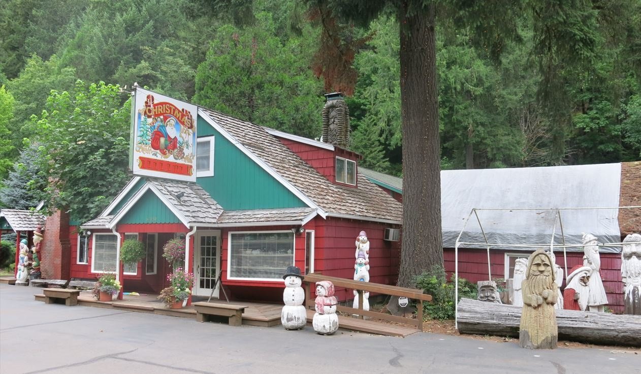 Aan de bomen te zien denk ik dichtbij America's westcoast. Ik probeerde Oregon en met "Christmas shop Oregon" op Google afbeeldingen gevonden! Het adres is Christmas Treasures, Inc.